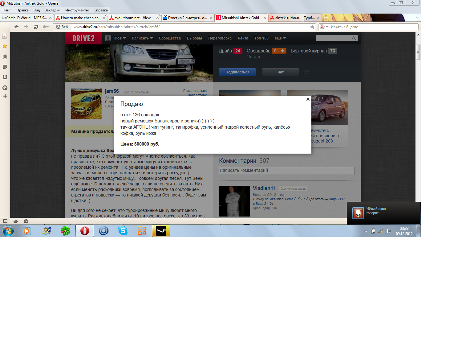 fanilla писал(а):Увидал сегодня на драйве что Антоха продаёт своего Трека за 600. НЕ ДАДИМ ПРОДАТЬСЯ ХОРОШЕЙ ТАЧКЕ?!?![]()