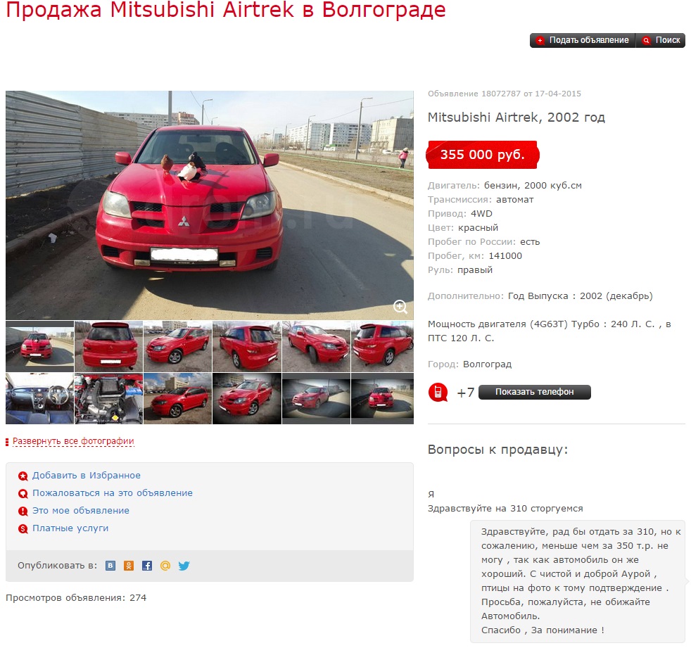 На картинке порадовали птицы и коментарий продавана больше чем морда от аута)