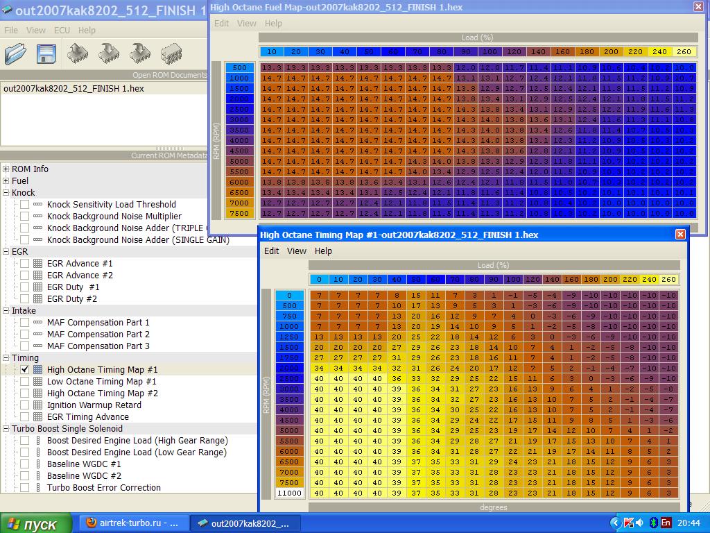 попали мне в руки 2 прошивки с разных аутов чипованных ежиком, топливо и зажигание одинаково, разница только в управлении солинойдом.