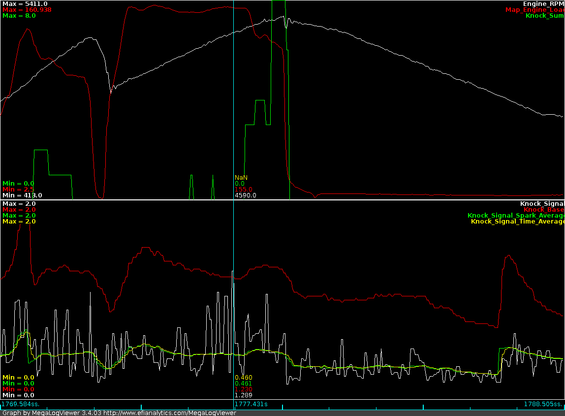 Когда я пытался снимать логи, чтобы увидеть как knock adc пересекает knock base, у меня ничего не вышло - слишком маленькая частота измерений. Надо Герц 50 хотя бы, а у меня от силы 4-5.