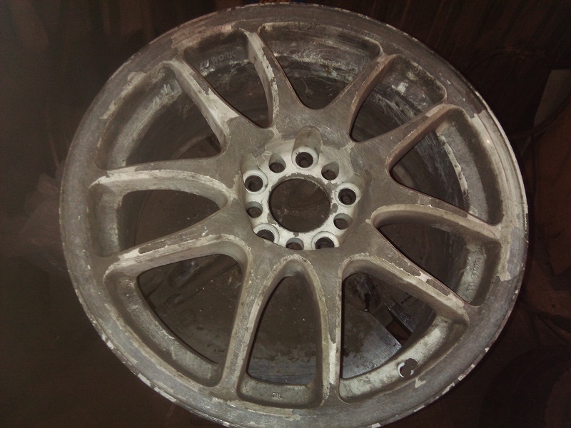 Вот на эти диски пришлось убить просто хренову тучу времени - нереально крепкое покрытие (старые оригинальные диски BMW от E53). На них была отработана технология борьбы с порошковой краской.