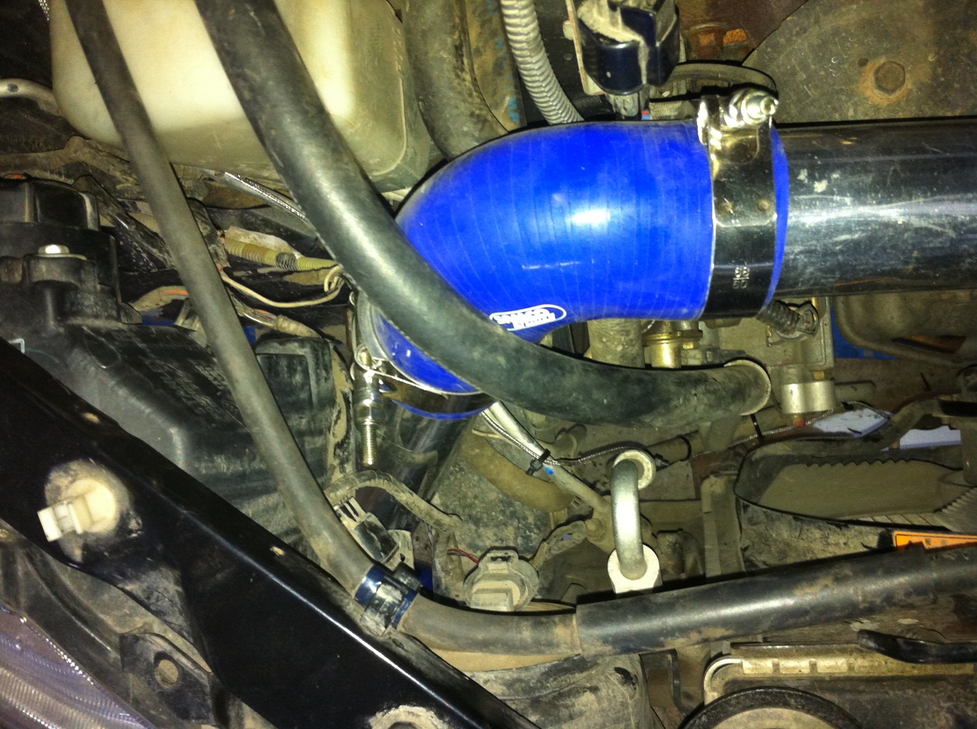 Левый пайп, что идет от кулера на дроссель, встал полностью болт он, ну или практически.Есть одна тонкость, у эво байпасс находится ближе к турбине, а у нас практичсески у самого корпуса воздухана и соответственно верхний патрубок упирается в байпасс!А вот правый пайп расчитан под нижний выход из турбины!Но, как говорится, было бы желание))