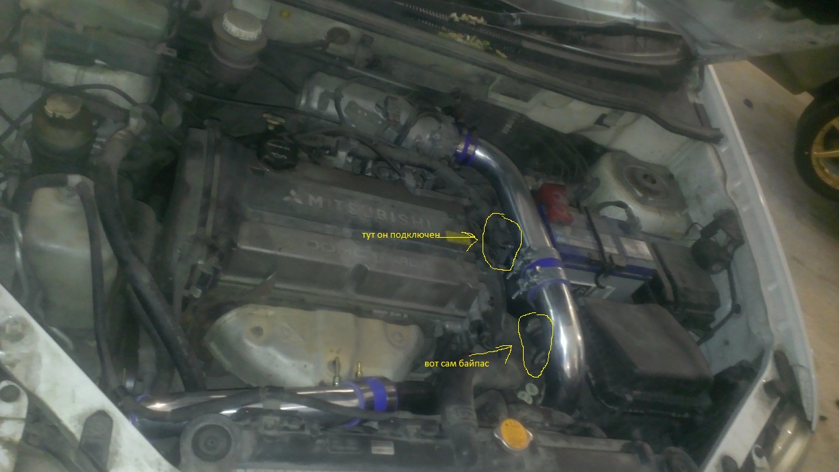 Левый пайп, что идет от кулера на дроссель, встал полностью болт он, ну или практически.Есть одна тонкость, у эво байпасс находится ближе к турбине, а у нас практичсески у самого корпуса воздухана и соответственно верхний патрубок упирается в байпасс!А вот правый пайп расчитан под нижний выход из турбины!Но, как говорится, было бы желание))