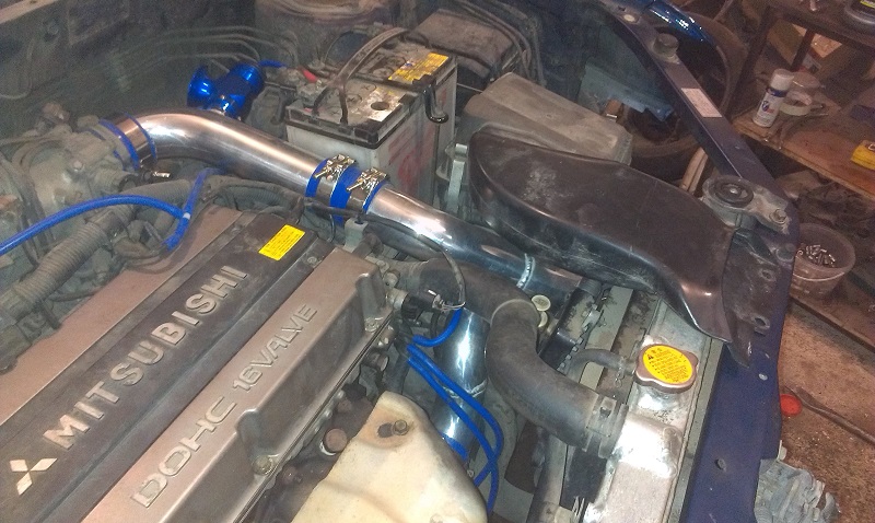 Левый пайп, что идет от кулера на дроссель, встал полностью болт он, ну или практически.Есть одна тонкость, у эво байпасс находится ближе к турбине, а у нас практичсески у самого корпуса воздухана и соответственно верхний патрубок упирается в байпасс!А вот правый пайп расчитан под нижний выход из турбины!Но, как говорится, было бы желание))
