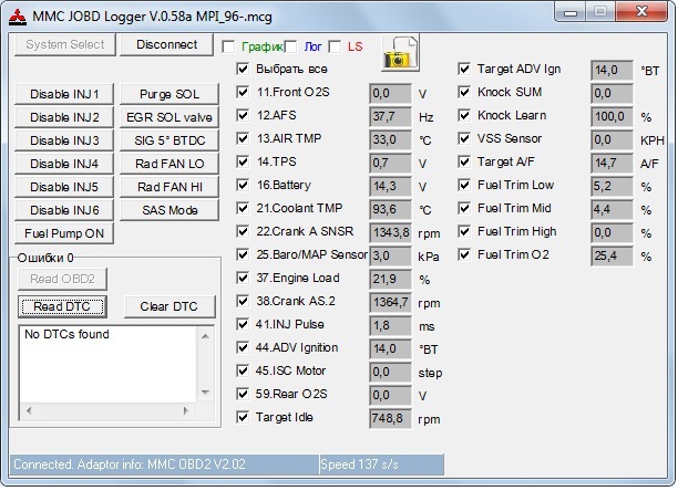 Шаги моторчика ХХ это ISC motor и на холостых как я понял они должны быть в районе 20-30? (У меня похоже 0!)