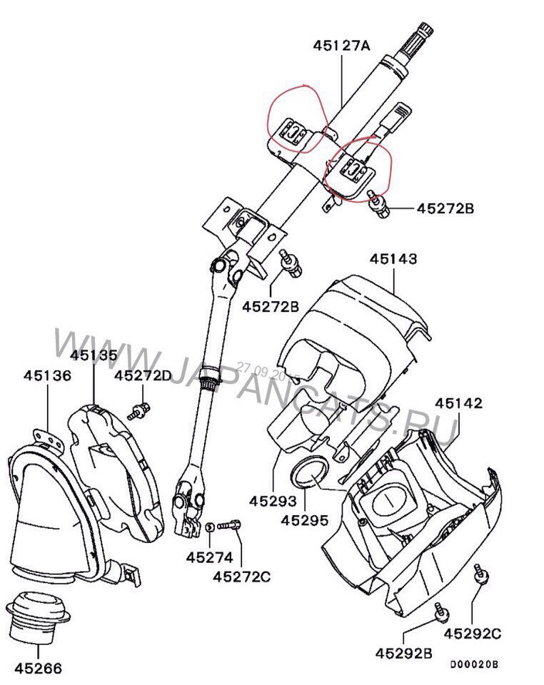 На схеме этого нет. Нужно снять колонку - тогда сразу все поймешь. Мы совсем недавно чинили точно такую же поломку. В итоге пришлось фторопластовые втулки заменить на бронзовые.