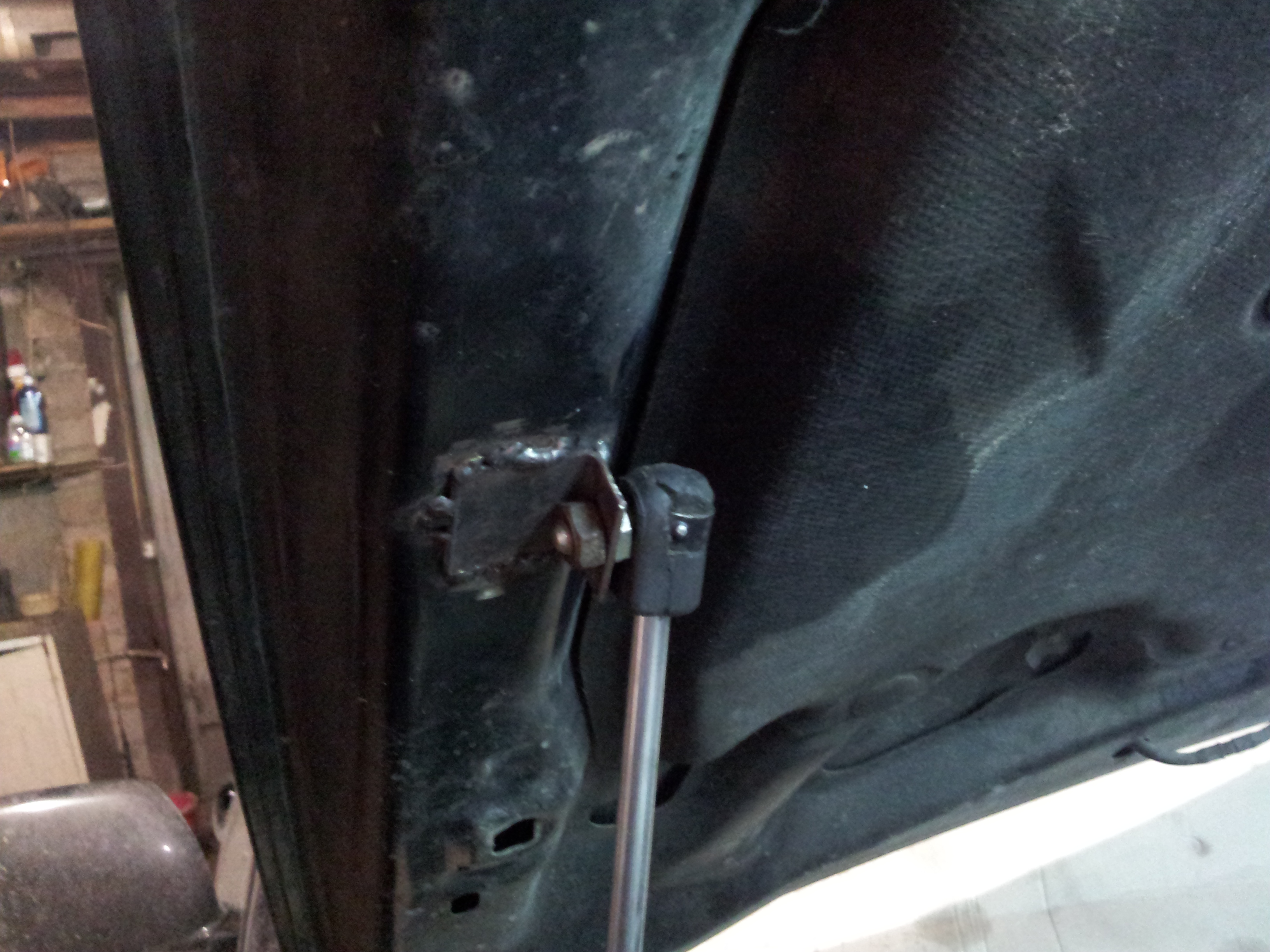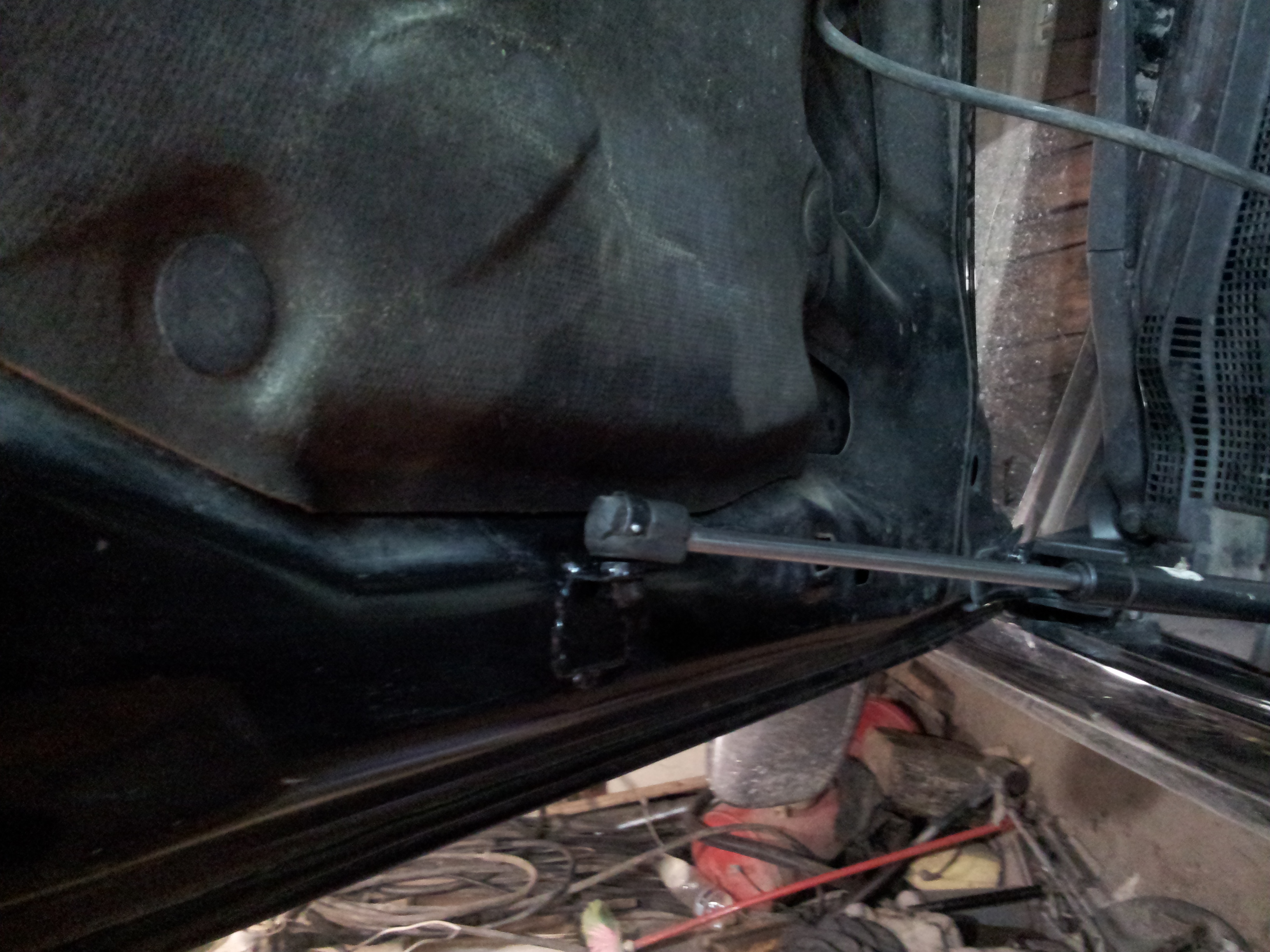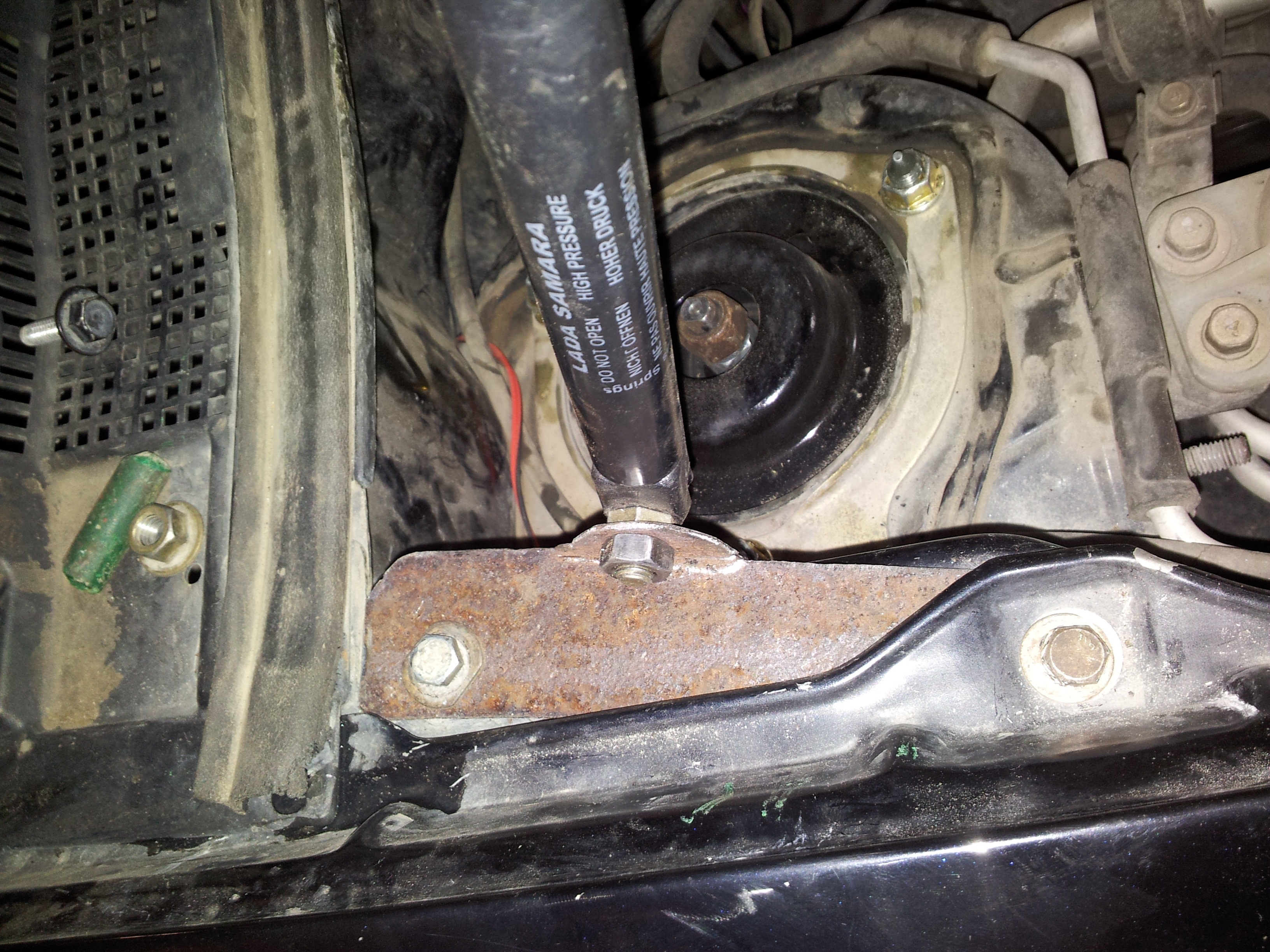Приварили верхнее крепление потому как иначе никак. Такова конструкция нашего капота...