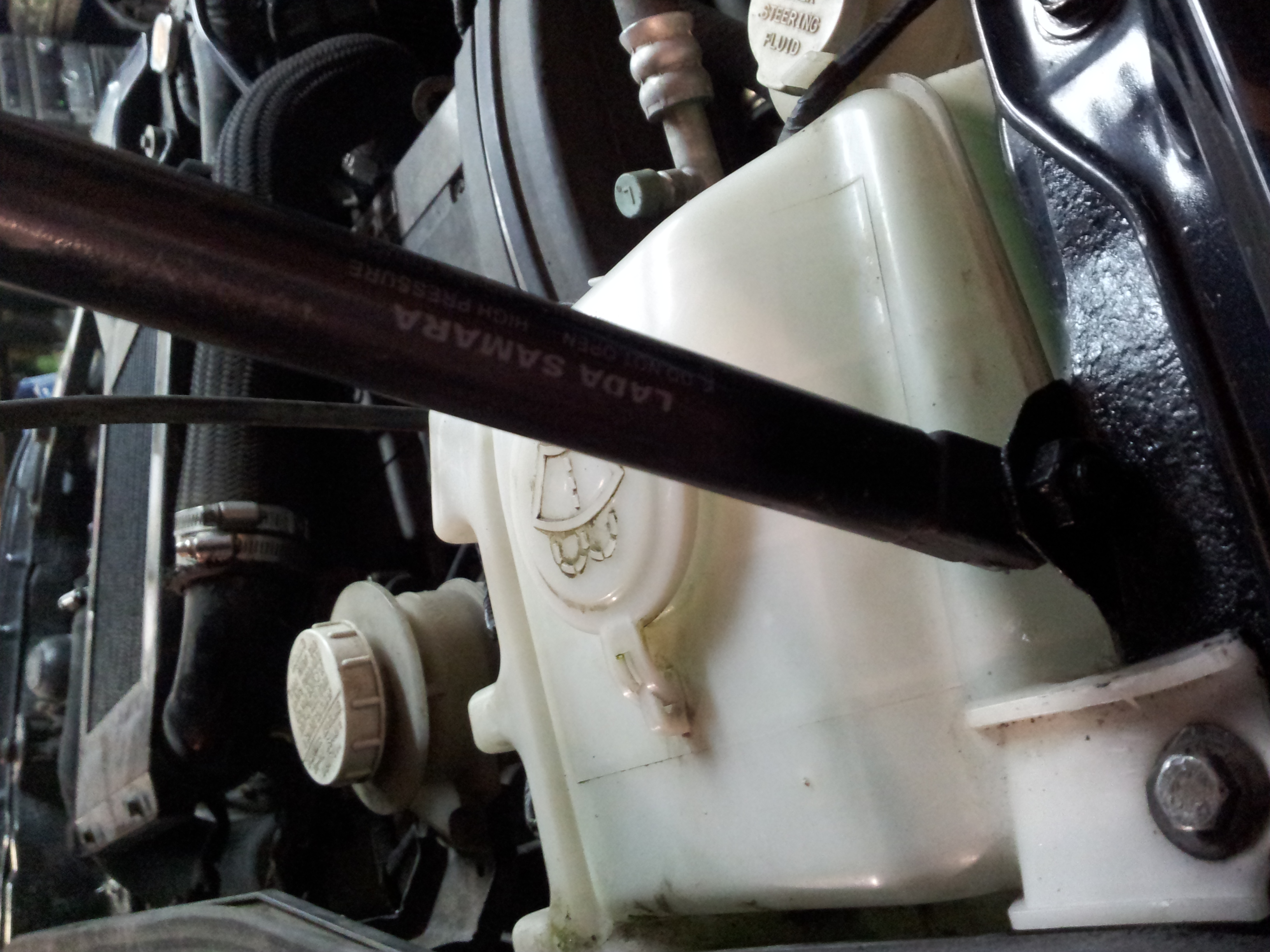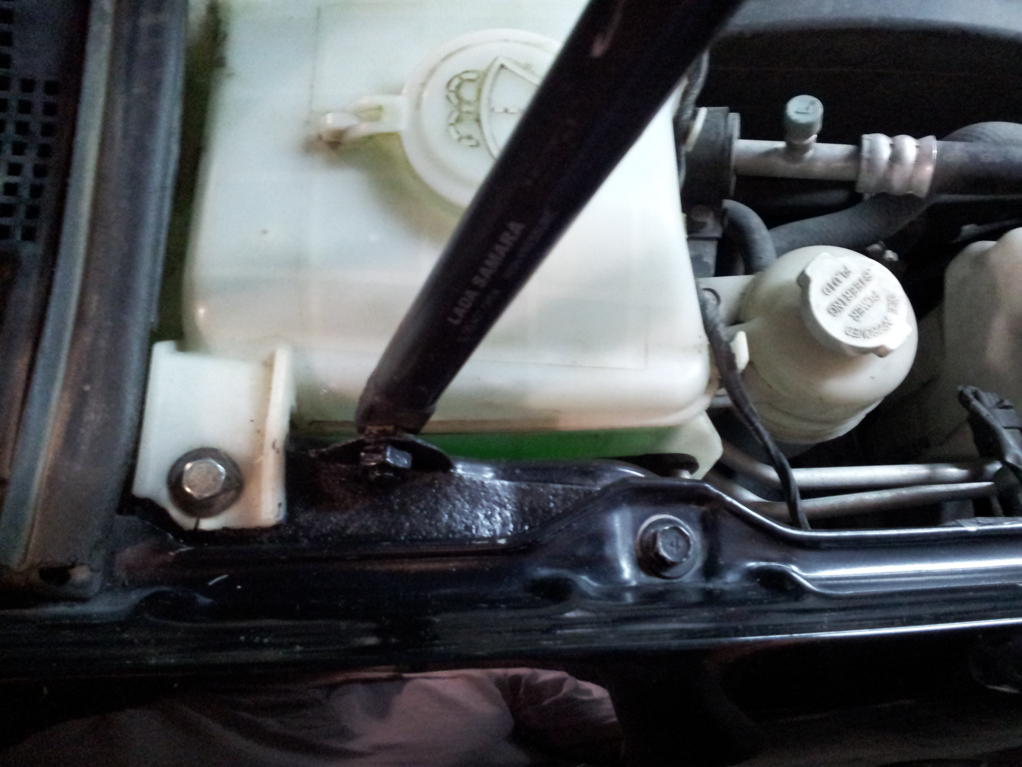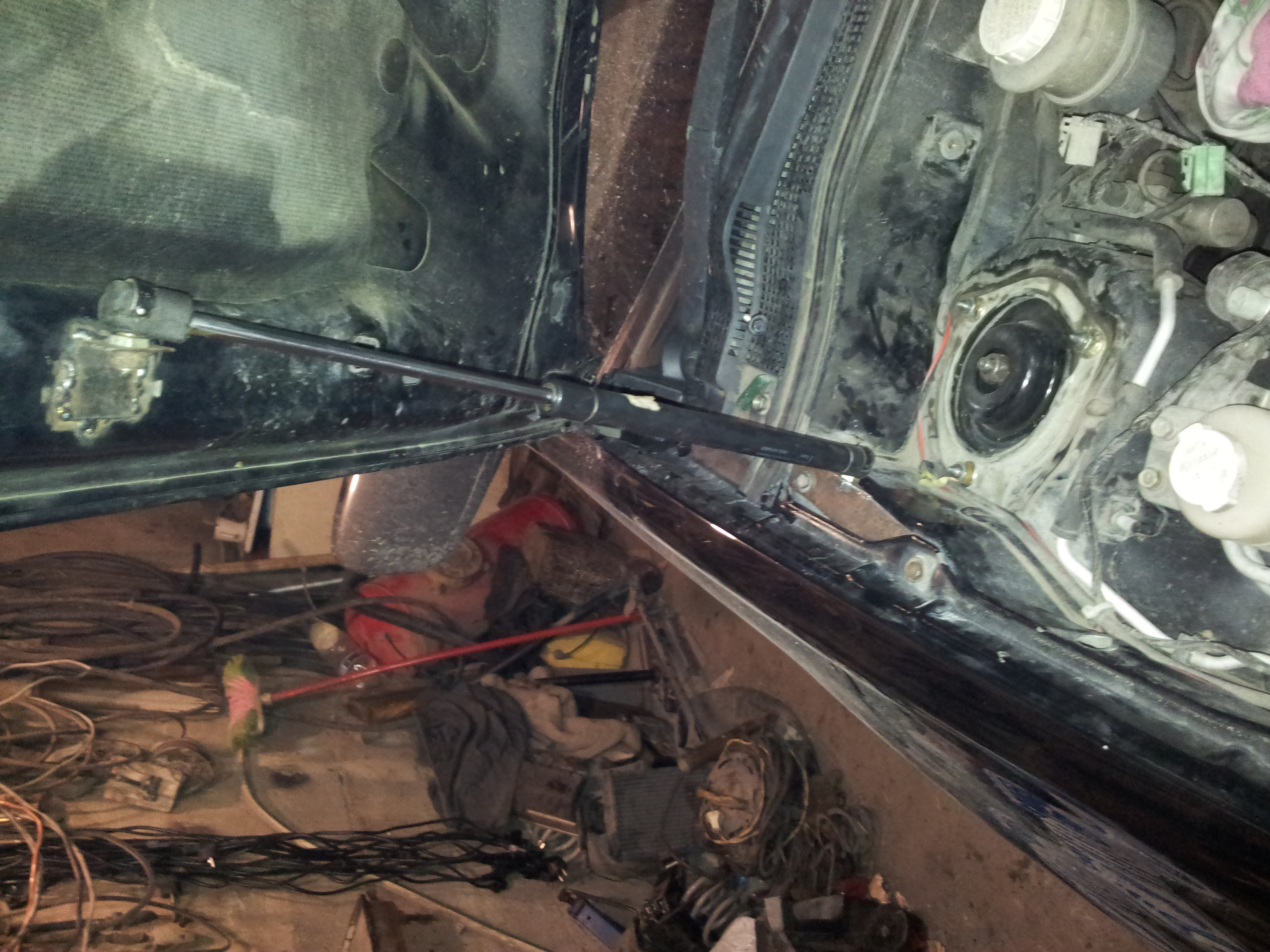 Приварили верхнее крепление потому как иначе никак. Такова конструкция нашего капота...