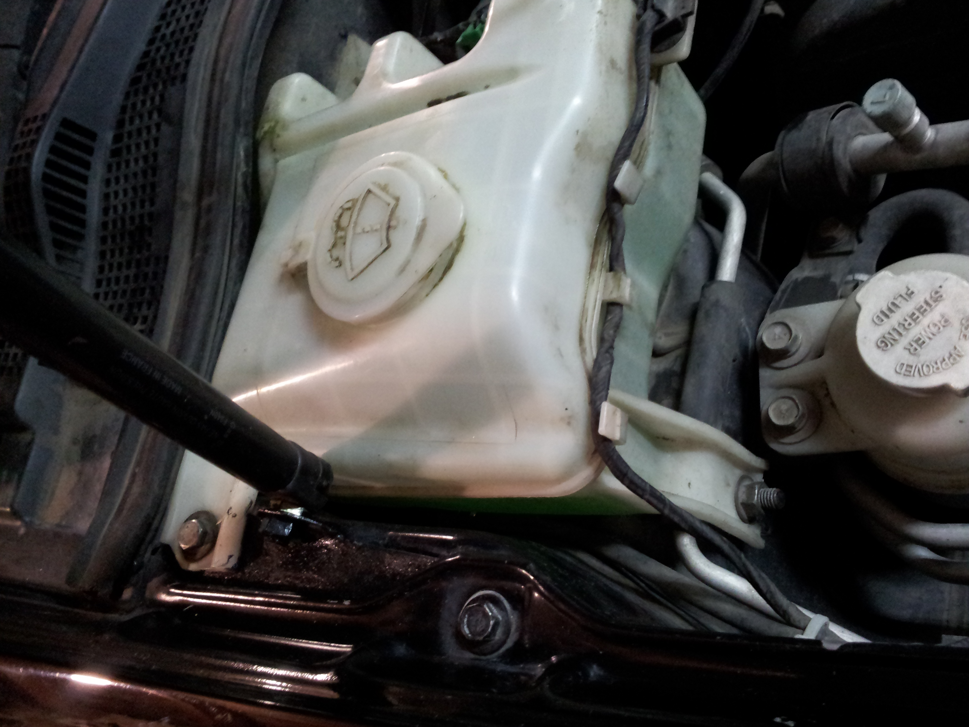 Откручиваем болтик крепления крыла, снимаем бачок омывателя. План таков.. делаем планку крепления нижней части из куска метала и крепим её на два болта (болт крепления бачка и болт крепления крыла).