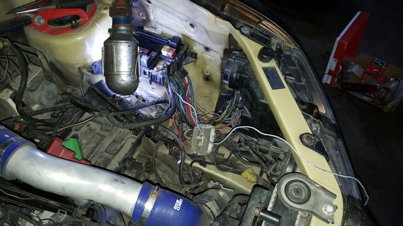 Несколько дней назад начался другой прикол, перестала работать омывайка лобового стекла, взмах стеклоочистителей и так же их прерывистый режим. Так же не работал дальний и туманки. Открыв схемы стало ясно, что дело опять в этом же пучке проводки. В итоге поехал к Владу и мы с ним нашли причину. Кроется она под капотом, возле левой фары, где пучёк проводки расходится в разные стороны. Нужные провода на изгибе окислились и сгнили. В итоге перемотал весь пучёк из салона до блока с предами, всё работает