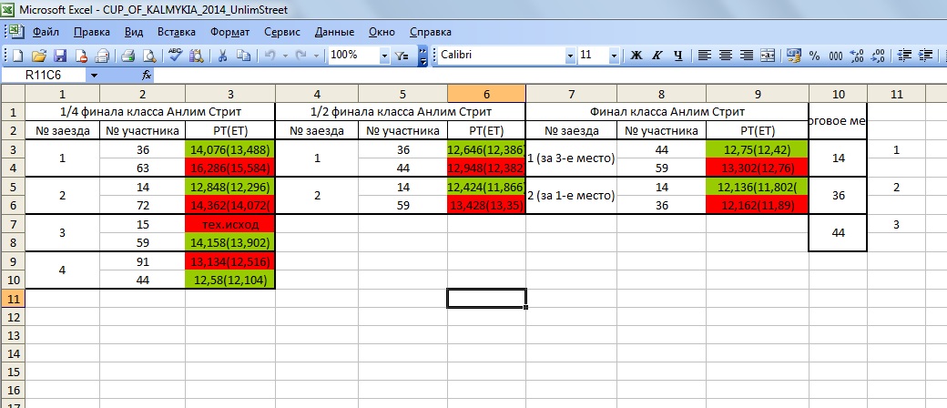 Повесили результаты финальных заездов на выбывание. Моё время чистое как и говорил 12,516 с задержкой 0,61 на старте. стартовый номер 91.