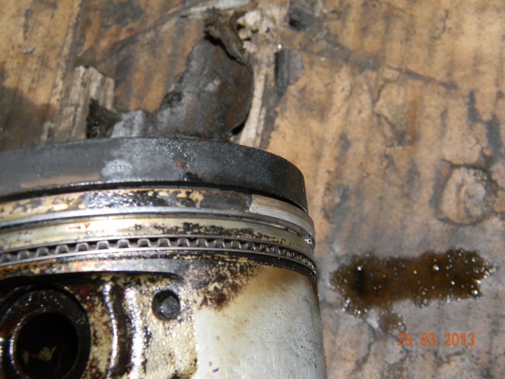 Мотор раскидали, на втором цилиндре отсутствует перегородка между кольцами(вернее она на месте, но отдельно от поршня!