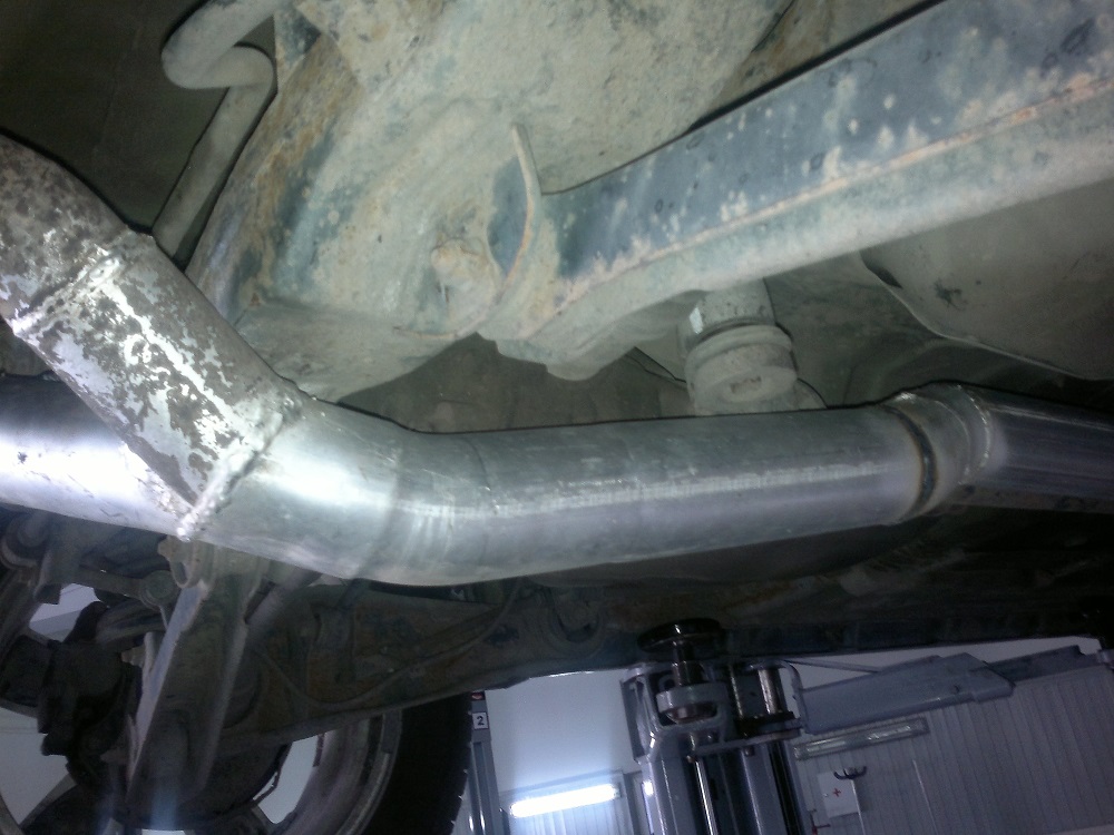 По выхлопу - Не далековато гофру убрал? Ее бы поближе к приемке, а саму приемку покороче