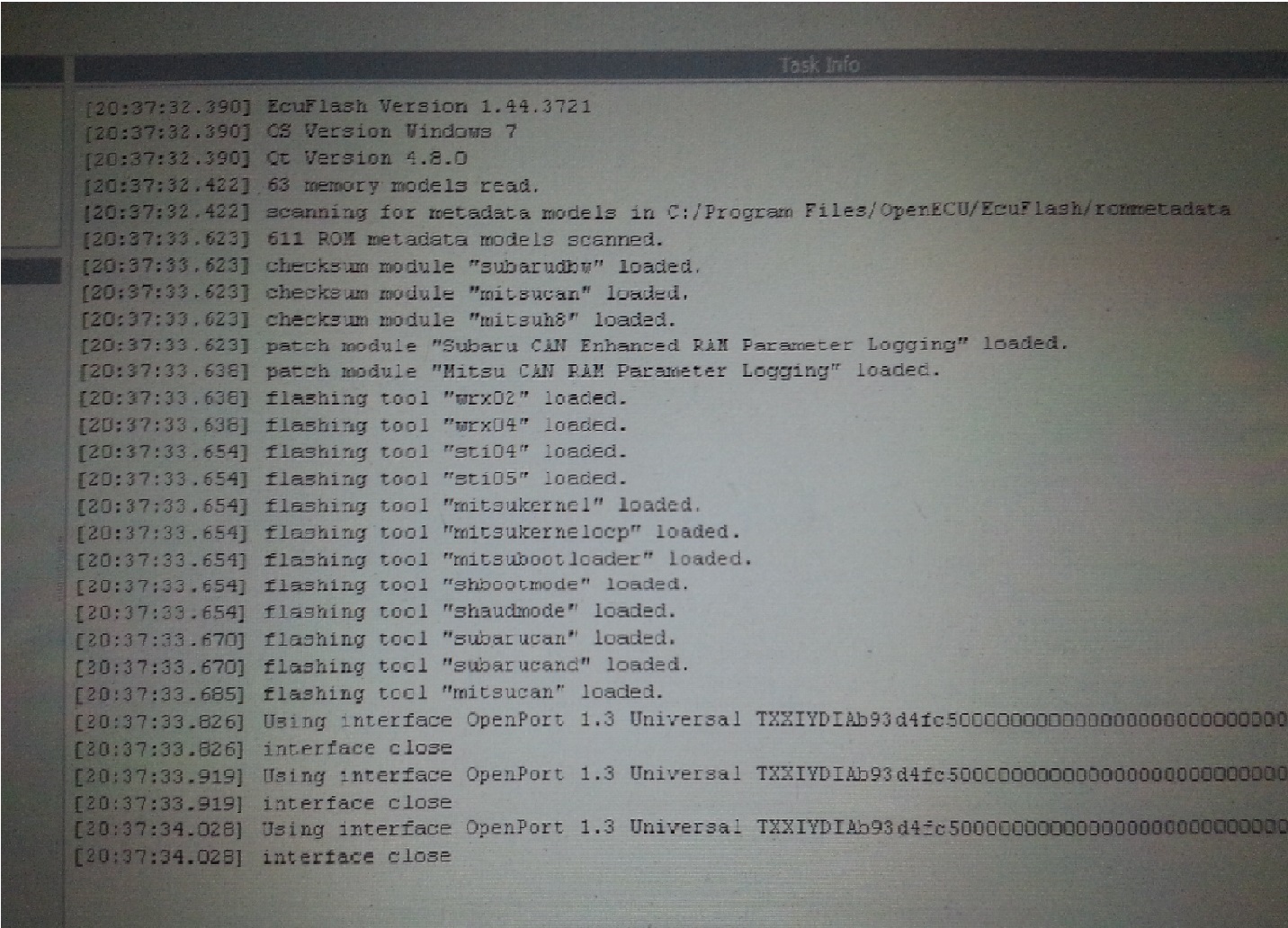 Друзья, возможно пишу не в ту тему, но проблема такая. EcuFlash 1.44 не видит ЭБУ вот что пишет . Evo Scan работает прекрасно. Операционная система Win7.