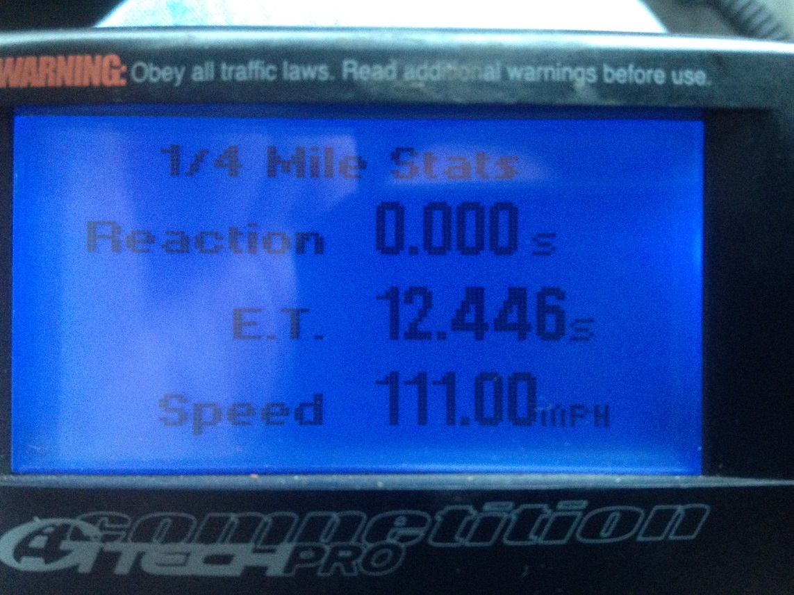 Я думаю,на 110-м реально из 12 на Михином конфиге.У меня на 95-м тачка едет 3,9сек до сотни,квотер-12,4сек.Правда,2,4-й