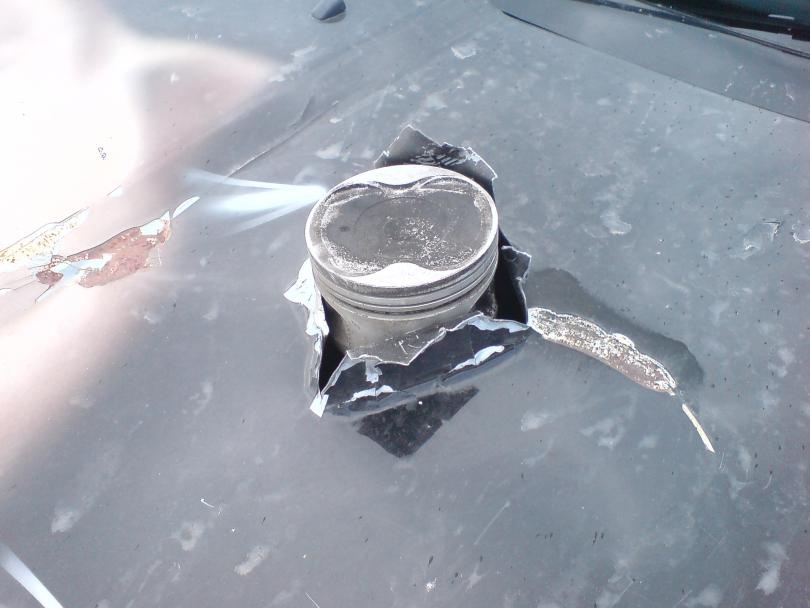 постанова. Ну ты сам подумай пробить башку, распреды, клапанку и капот и поршень целый???