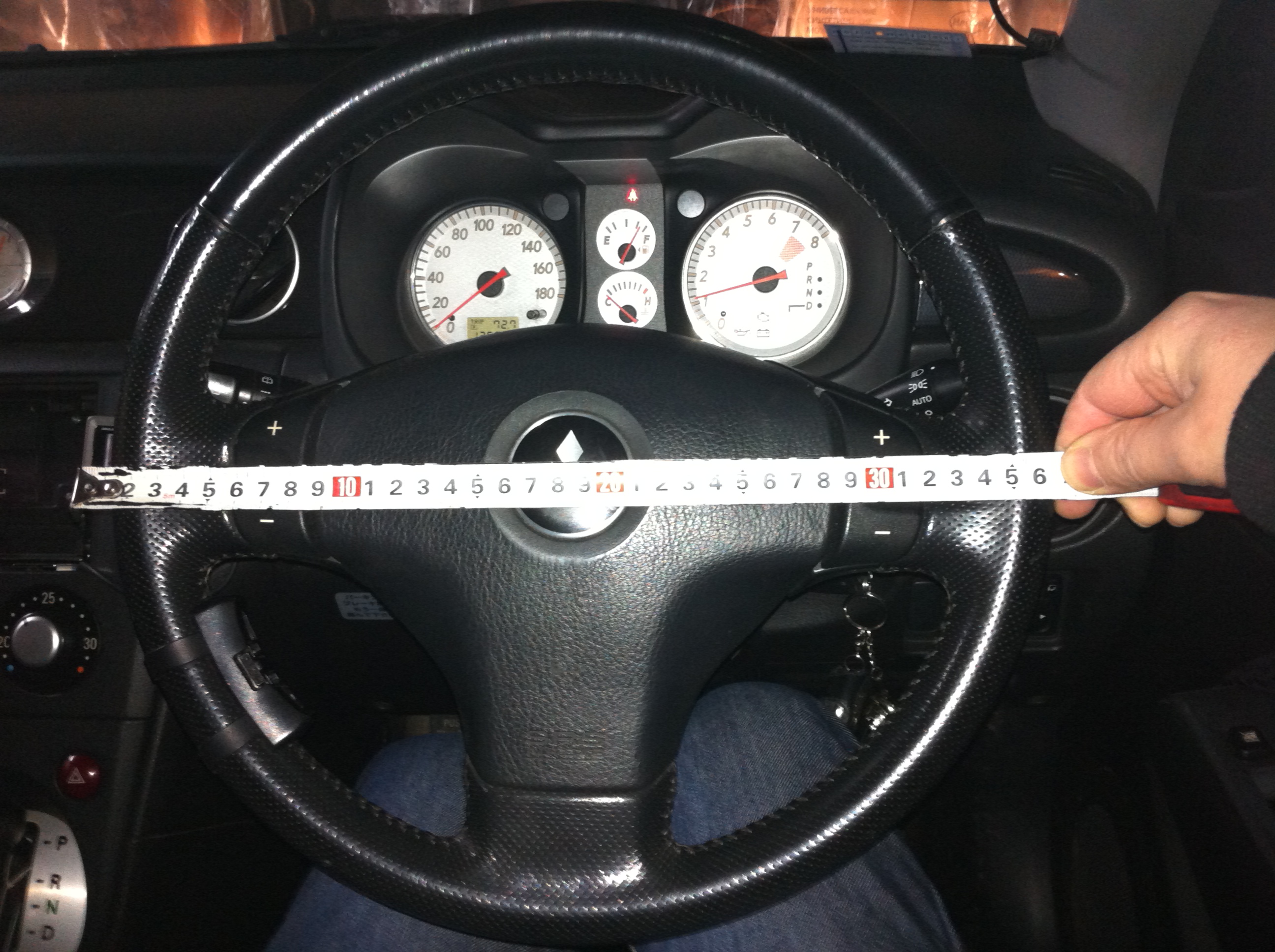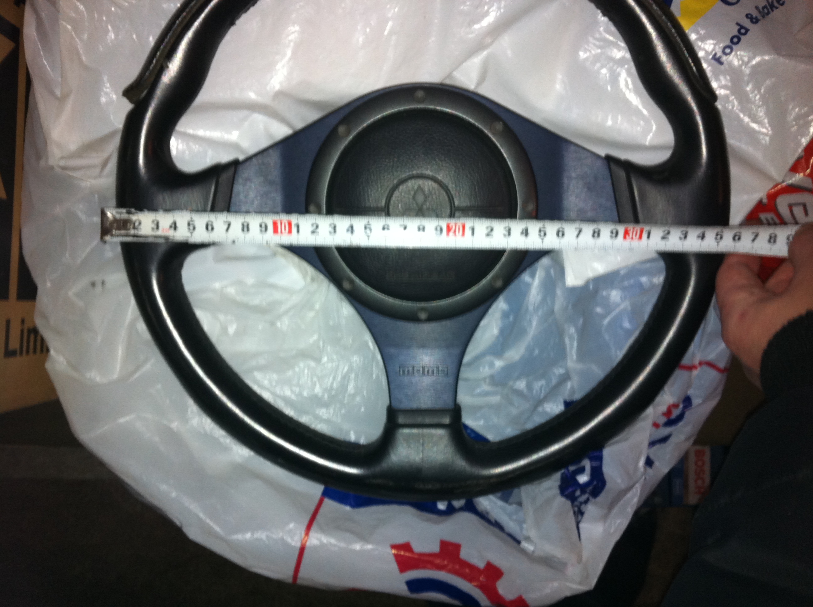 В общим замерил я размеры рулей - диаметр у обоих 36 см. Ну на фото конечно может показаться типа 35.5 или 36 или 36.5 - это связано с тем что неудобно одной рукой держать фотик а второй метр + подушка руля имеет выпуклость.