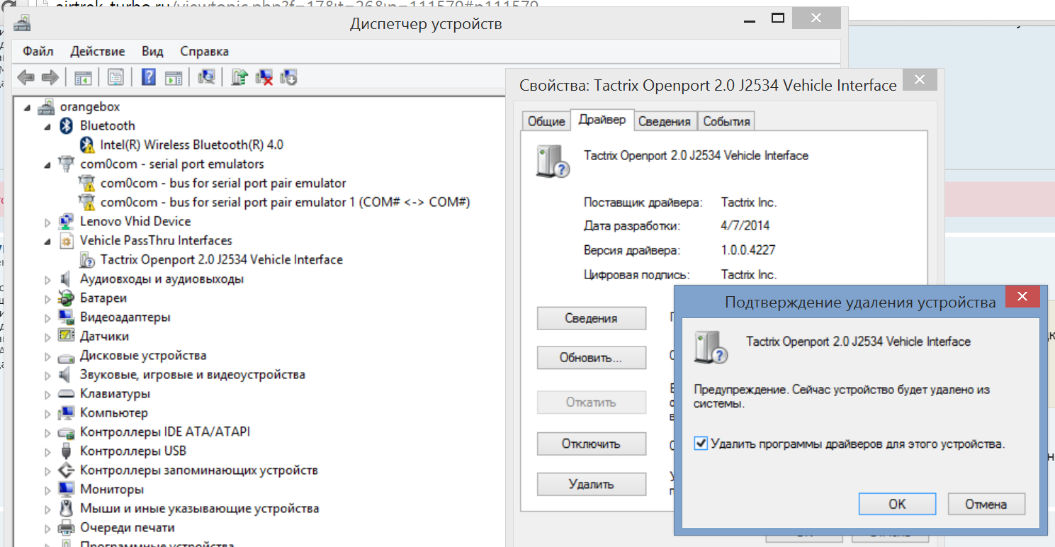 Чтобы удалить драйвер надо отметить пункт "Удалить программы драйверов для этого устройства"