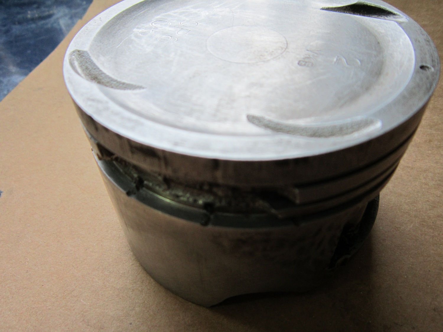 Ничего странного - на лицо небольшой детон и хрупкий поршень - на бошке следы детона - отломаная перегородка - результат. Что это за нонейм поршня?