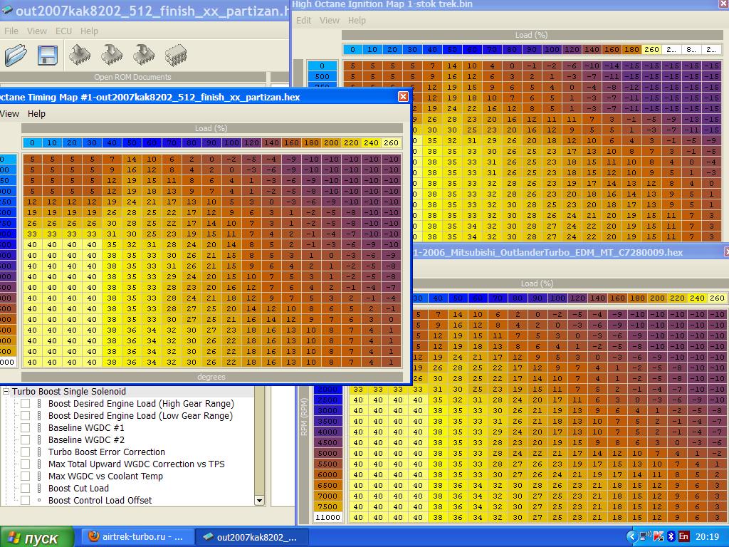 несколько дней назад я последний раз подправлял карты. делал логи (на 3й в подъем, да и 4й немного) кноков не было можно сказать, темпер 900 строго был. сегодня ехал в курск, есть прямые участки где можно лупануть. в обще на пружине хотел посмотреть егт. стрела дошла до 900 и застыла. дай думаю на бусте. в общем стрела уверенно переваливала за 900. это было на 1.3. включил на кило. то же самое, стрела уверенно переваливала за 900. и я ума не приложу в чем дело. к сожалению ноута не было с собой чтобы лог сделать. ехала хорошо, ровно, без поддергиваний.