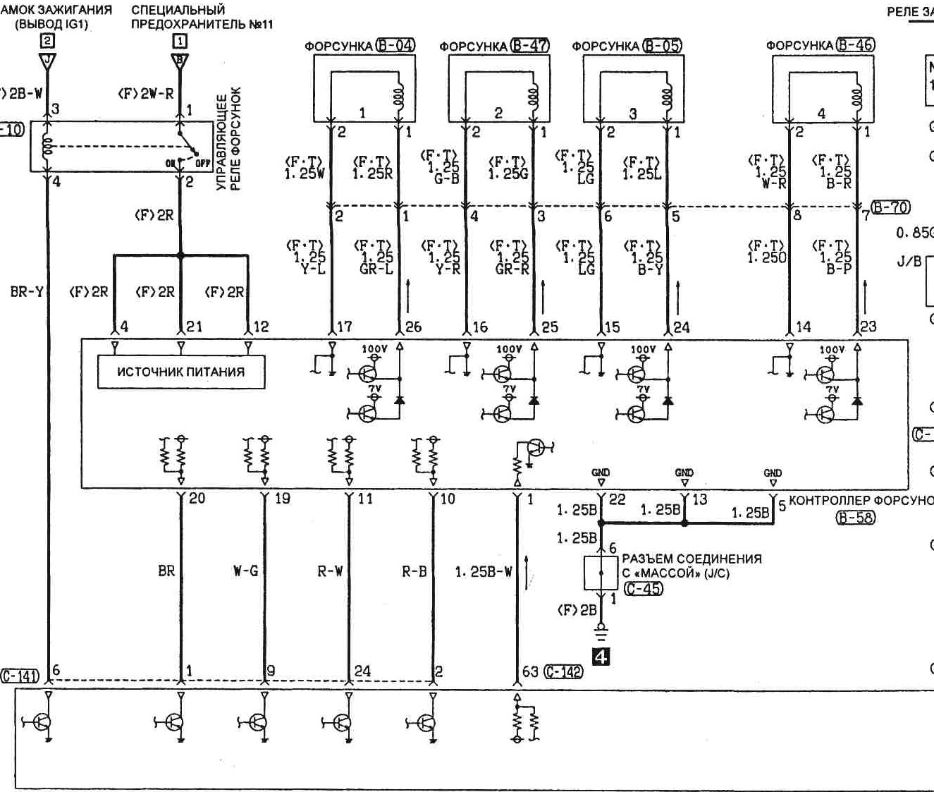 Peak and hold. В мозгах устанавливается не просто транзистор, а спешл драйвер. Драйвер умеет управлять напряжением на форсунке и контроллировать ток, протекающий через неё. Драйвер имеет цепь "вольт-добавки" и в момент включения форсунки выдает напряжение выше бортовой сети 24-48 вольт, стараясь этим закачать в форсунку как можно больше тока, чтобы форсунка открылась как можно быстрее. Это и есть "Peek". По мере роста тока, протекающего через форсунку, драйвер снижает напряжение. Когда форсунка открылась и ток стабилизировался, драйвер удерживает небольшое напряжение, обеспечивая минимально необходимый ток требуемый для форсунки, чтобы она не закрылась. Это и есть "Hold". В момент закрытия форсунки, некоторые драйверы могут подавать даже обратное напряжение для ускорения процесса закрытия форсунки. Для такой системы низкоомная обмотка уже не нужна и форсунка представляет из себя катушку намотанную тонким проводом с большим кол-ом обмоток.