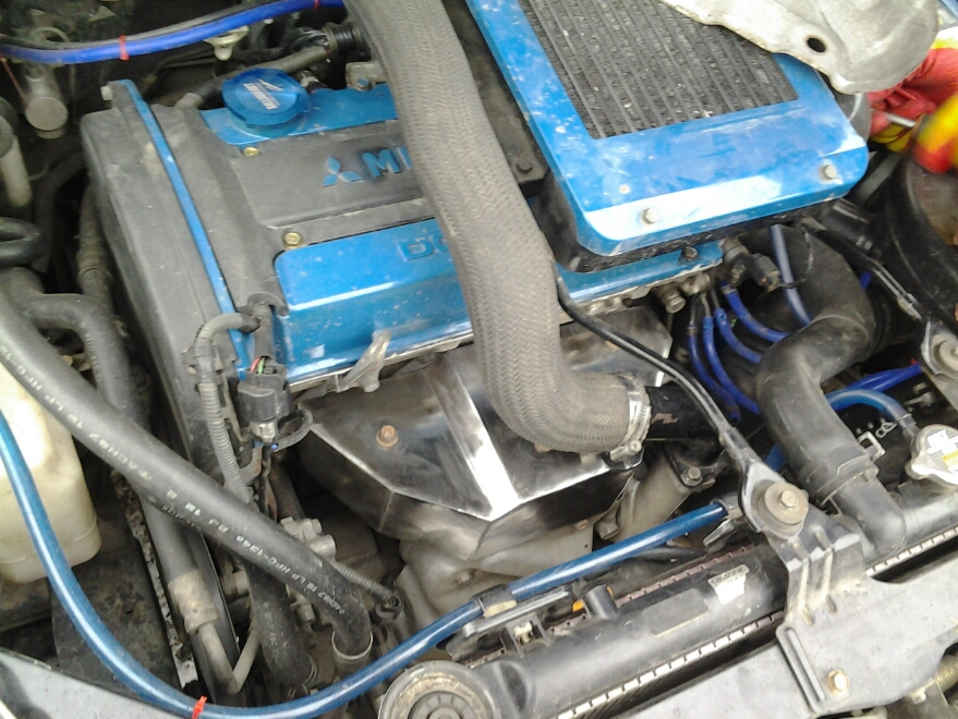 если на тд04-05 встаёт почтти болт он от хонда перлюд от двигателя н22а он 3х-слойный , закрывает к ебеням всю турбину, Шота Сан, видел, думаю может подтвердить, что это самый дешОвый и надёжный вариант без колхоза, цена вопроса от 200 до 620р. ах да надо просверлить 2 дырки под наш коллектор, вот так это выглядит от радиатора 2см. ну и довольно естетично