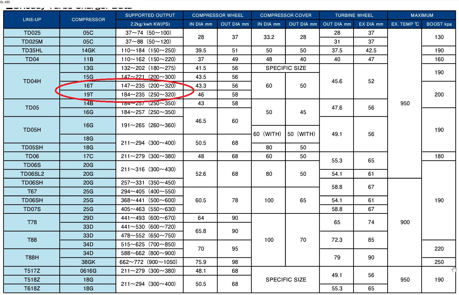 Там просто не все параметры указаны. Диаметр индьюсера, диаметр эксдьюсера... а длинна самого колеса компрессора не указана. Она у 16т больше на 4 с лишним мм, чем у 15г. Соотвественно с более длинными лопатками, 16т нагнетает больше воздуха.