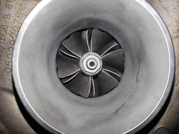 Поперечный люфт это норма для б.у. турбин. Крыльчатка подъедена нулевиком, не критично. У эво-8 у всех турбин которые я в руках держал подобная ситуация с крыльчаткой. Основное что вызывало бы опасения это продольный люфт, вот если он есть, то тогда турбине хана. А так ставь и ездий, все с ней нормально.