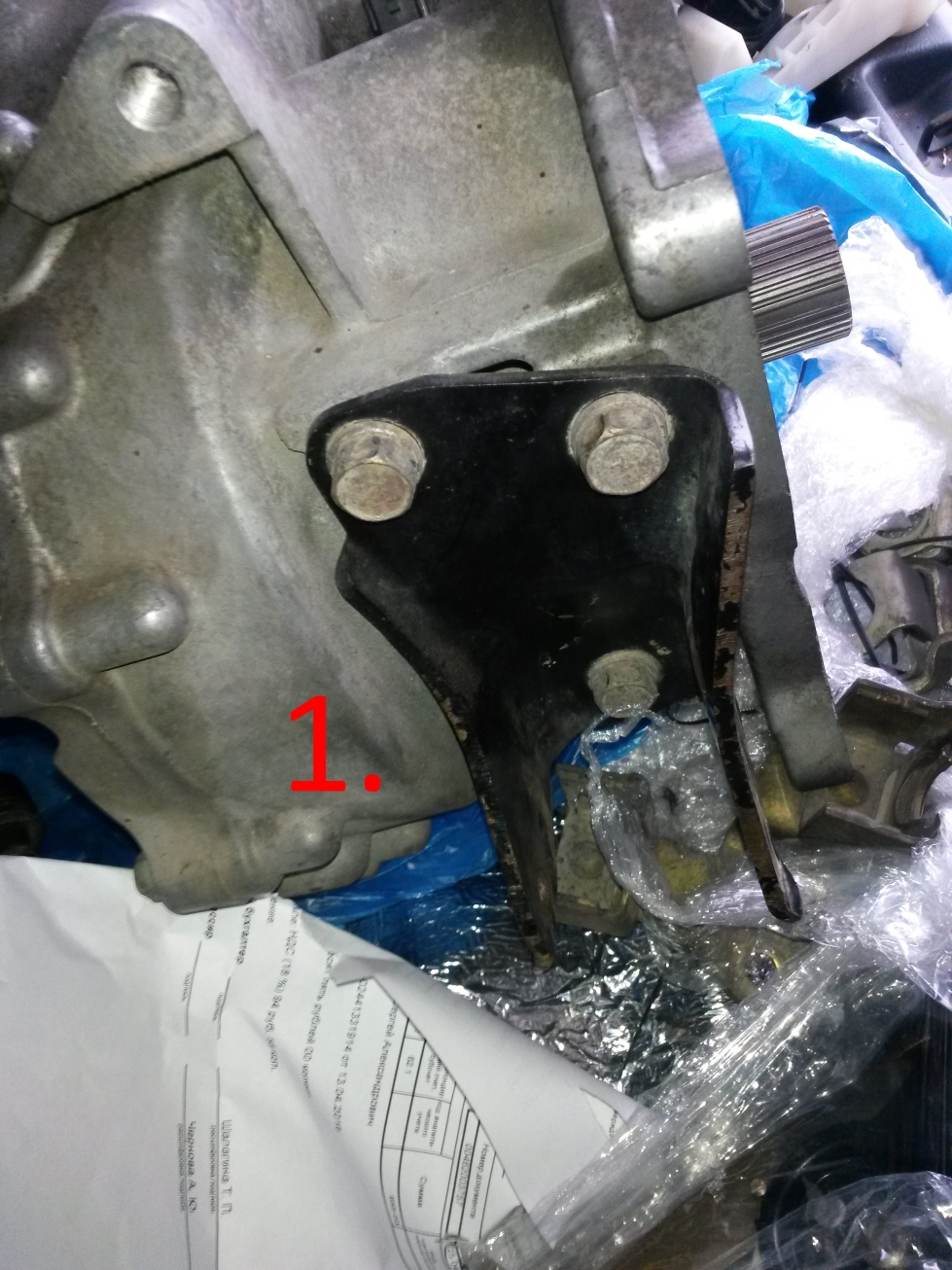 1 - кронштейн задней подушки, дюже дефицитная вещь, на автомате другой, под два болта.