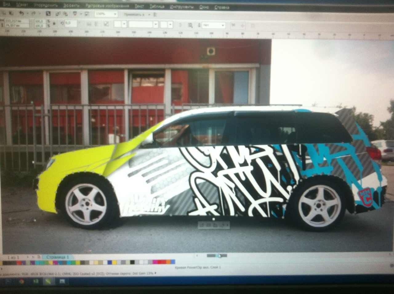 Знакомый из Restyling.ru предложил вот такое) Это на тему стрит арта) ну или ралли) С цветом если поиграть то круто будет смотреться)