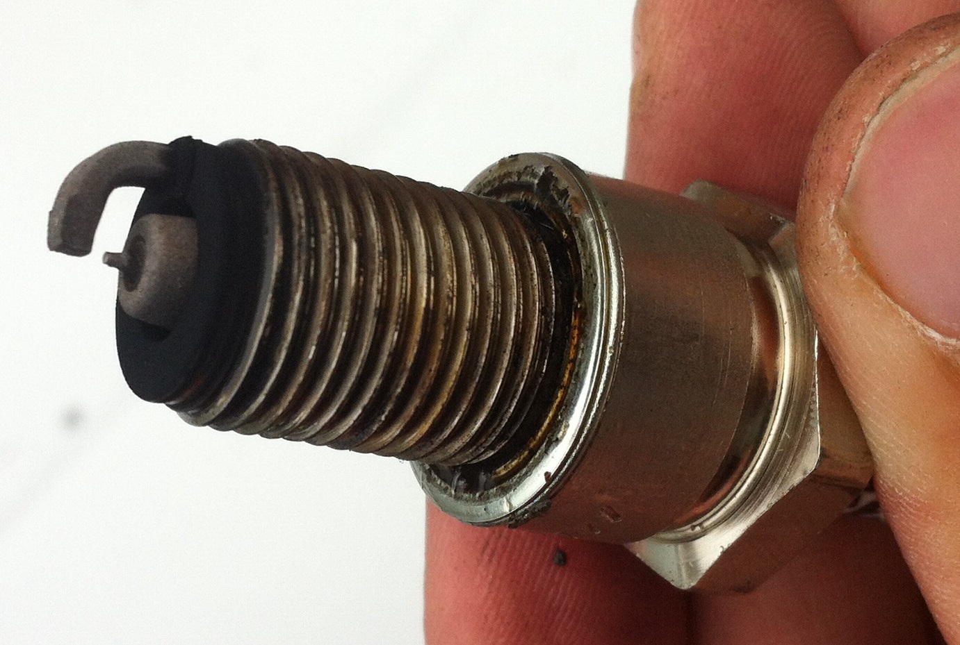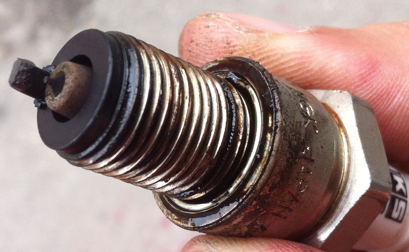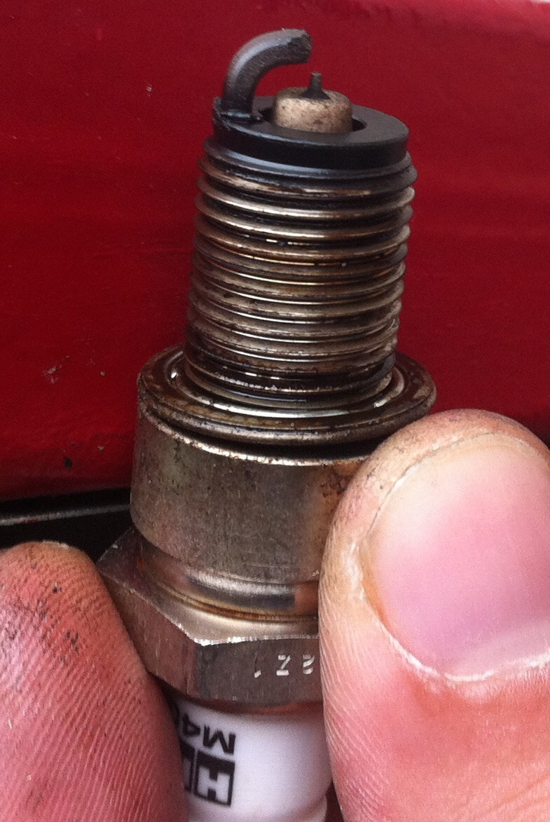 Вопрос-проблема третья - Во втором горшке сдуло часть электрода на свечи - см.фото.....вот она причина детона. Ок, свечу я поменял на такую же ХКС м40G....вопрос.... может этот кусочек свечи чо намутил мне что у меня масло во впуск кидает или пока не стоит увязывать эти вещи?