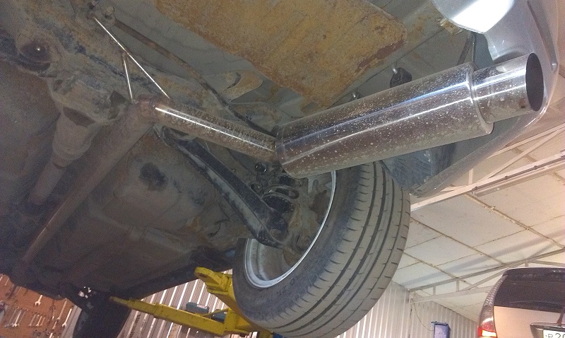 Помимо тормозов доделали выпускную трассу из нержи диаметром 63мм, поскольку выход с турбины тоже 63мм. Даунпайп пока оставил стоковый.