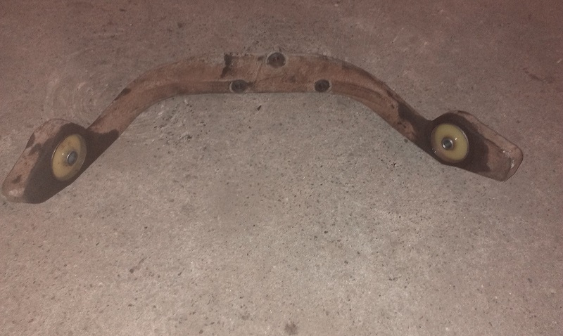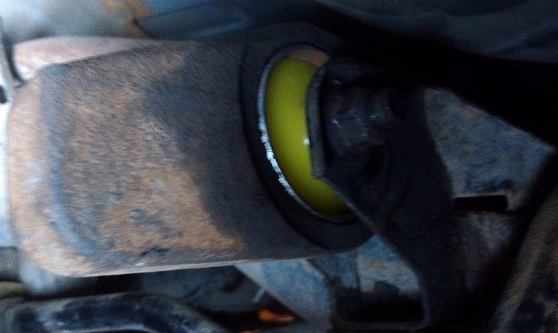 Давно уже лежали полиуретановые сайленты в крепление заднего редуктора, решил их поставить. Снять "кочергу" с сайлентами достаточно несложно, приходится только слегка опустить подрамник, после чего она вылетает со свистом. Заодно и болты крепления подрамника смазал.