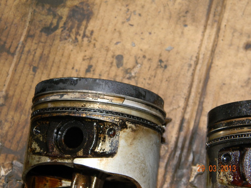 Мотор раскидали, на втором цилиндре отсутствует перегородка между кольцами(вернее она на месте, но отдельно от поршня!