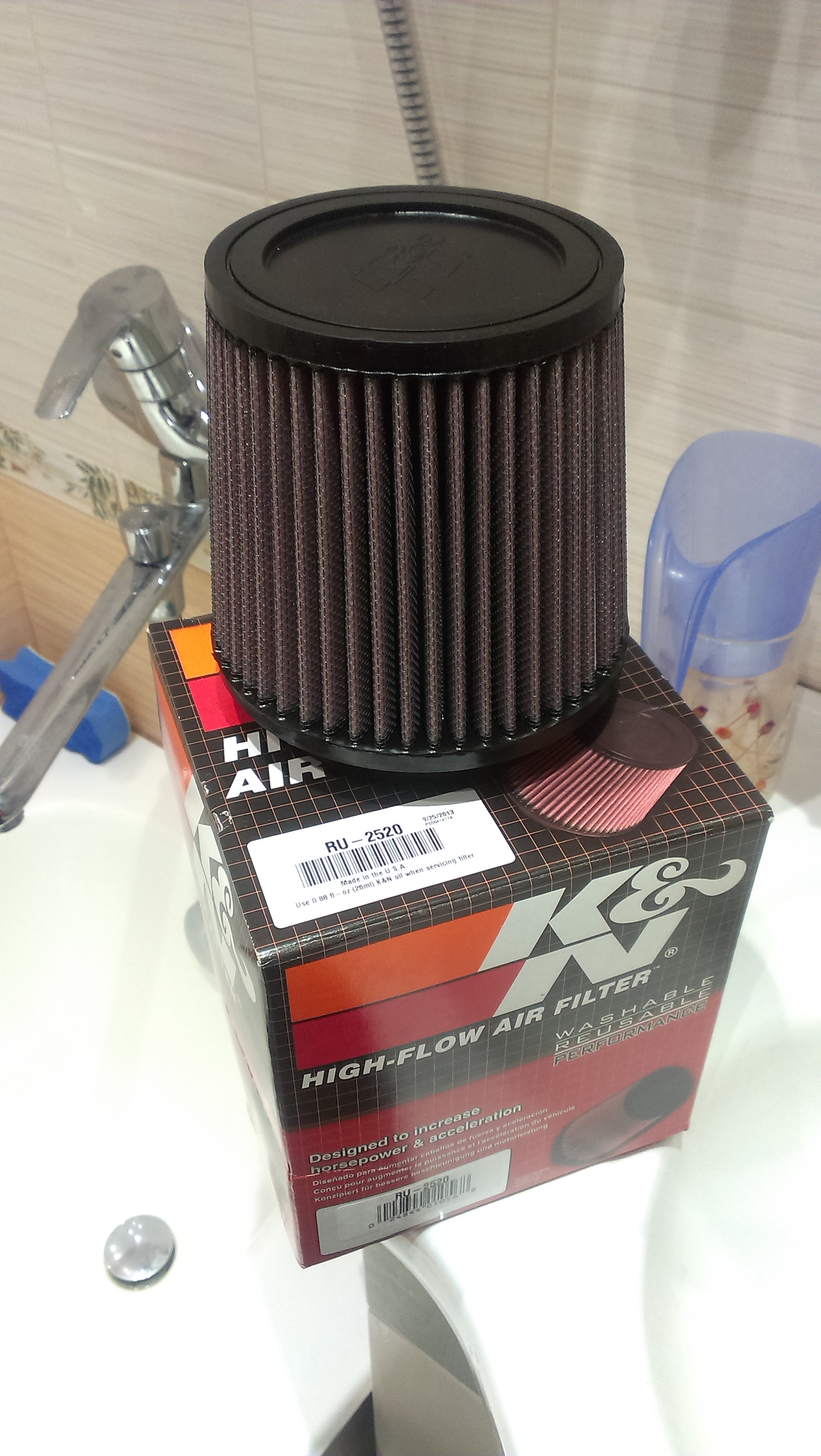 Приехал новый нуль K&N RU-2520. Немного покороче того, что сейчас стоит K&N RF1015, т.к. тот упирается в проводку немножко.