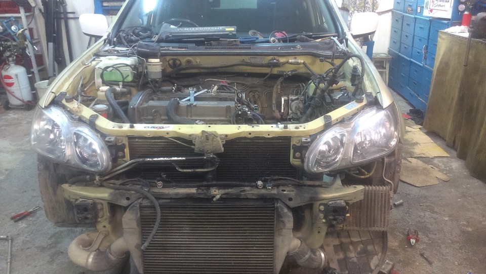 Для этих целей был куплен с одного из наших распилов мотор, с маленьким пробегом и в идеальнейшем состоянии. А к нему эво потроха новые купили, турбину ту самую у Андрюхи из Братска выцепили за 35 рублей, с пробегом 10ткм всего :)