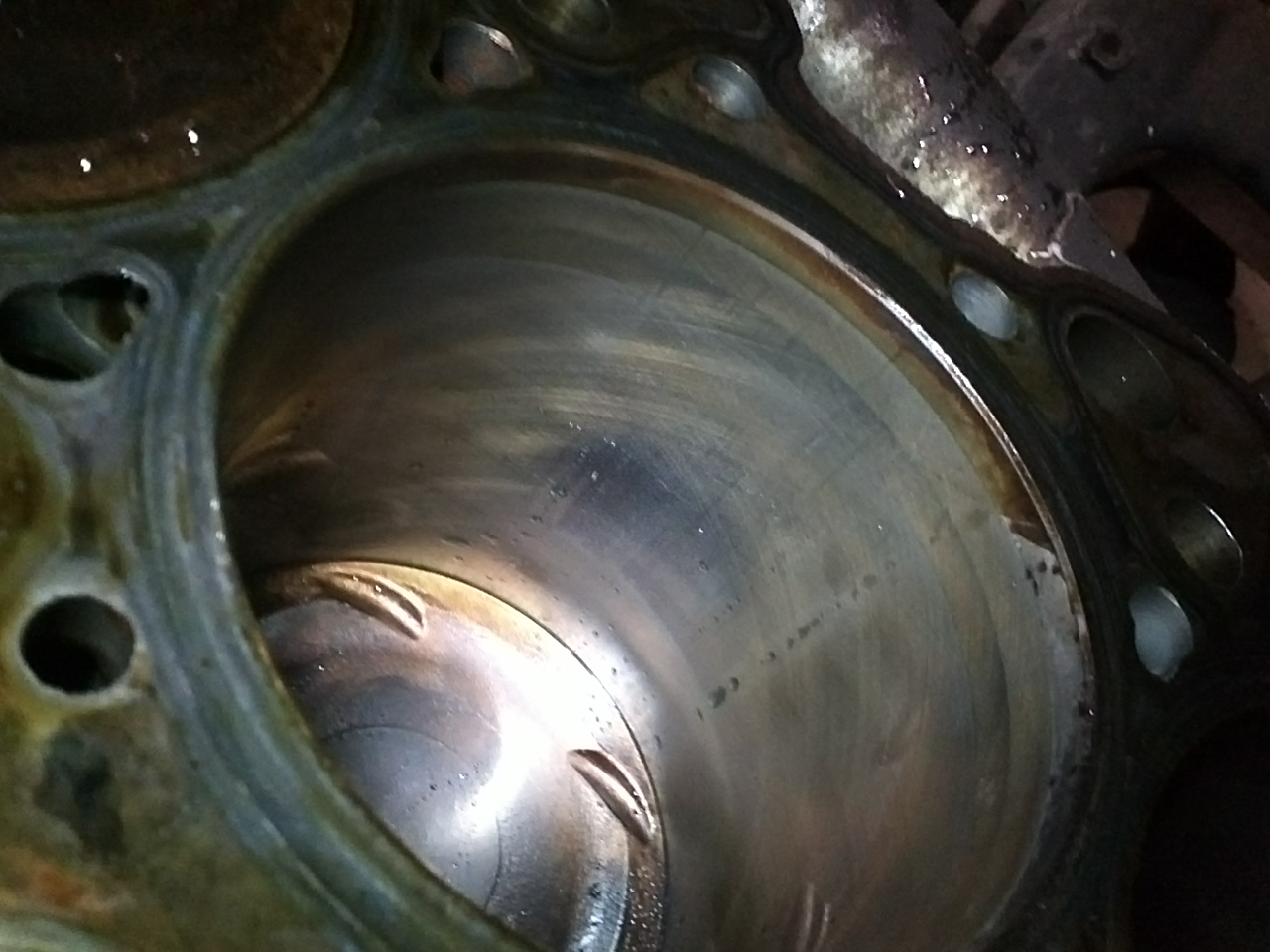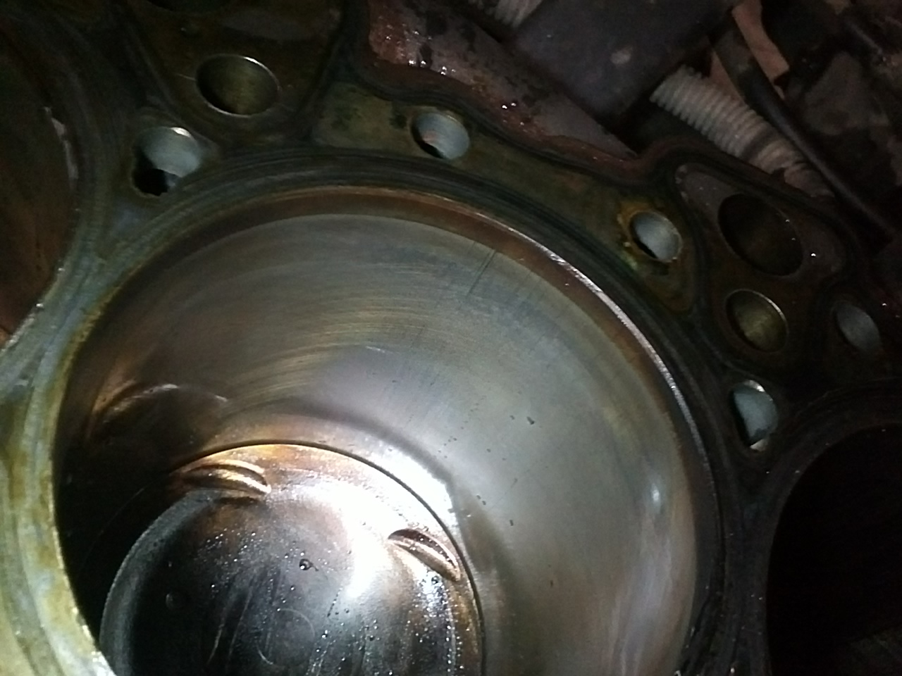 сегодня вскрыли гбц и увидели не из приятных. поршень 4го цилиндра обшоркан, залегло кольцо, в 4м цилиндре обильные задиры. во 2м и 3м с поршнями и кольуцами все нормально, но на цилиндрах имеются маленькие маленькие задиры. в остальном все нормально, мотор внутри чистый для 140 т.км. пробега.