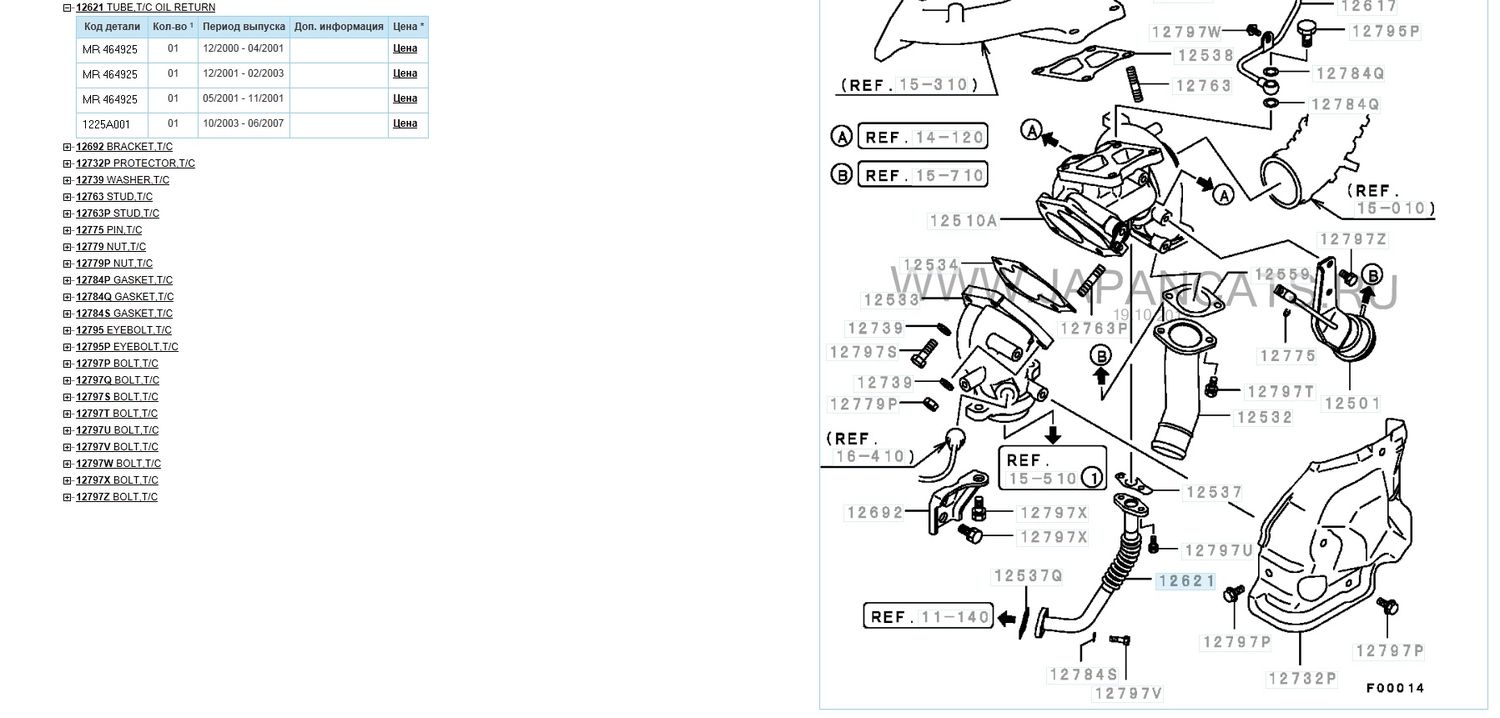 Путь № 2 - заходишь в Экзист (надо быть зарегеным) - ПОИСК ПО КАТАЛОГАМ - Оригинальные - Митцубиси - Япония - Lancer, Lancer Cedia - СТ9А - Выбираешь любое ЭВО (они все на ТД-05) - СИСТЕМА ВПУСКА И ВЫПУСКА - ТУРБОКОМПРЕССОР - И СМОТРИШЬ СВОЙ НОМЕР