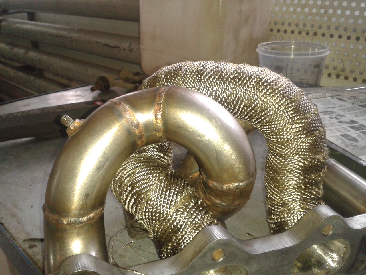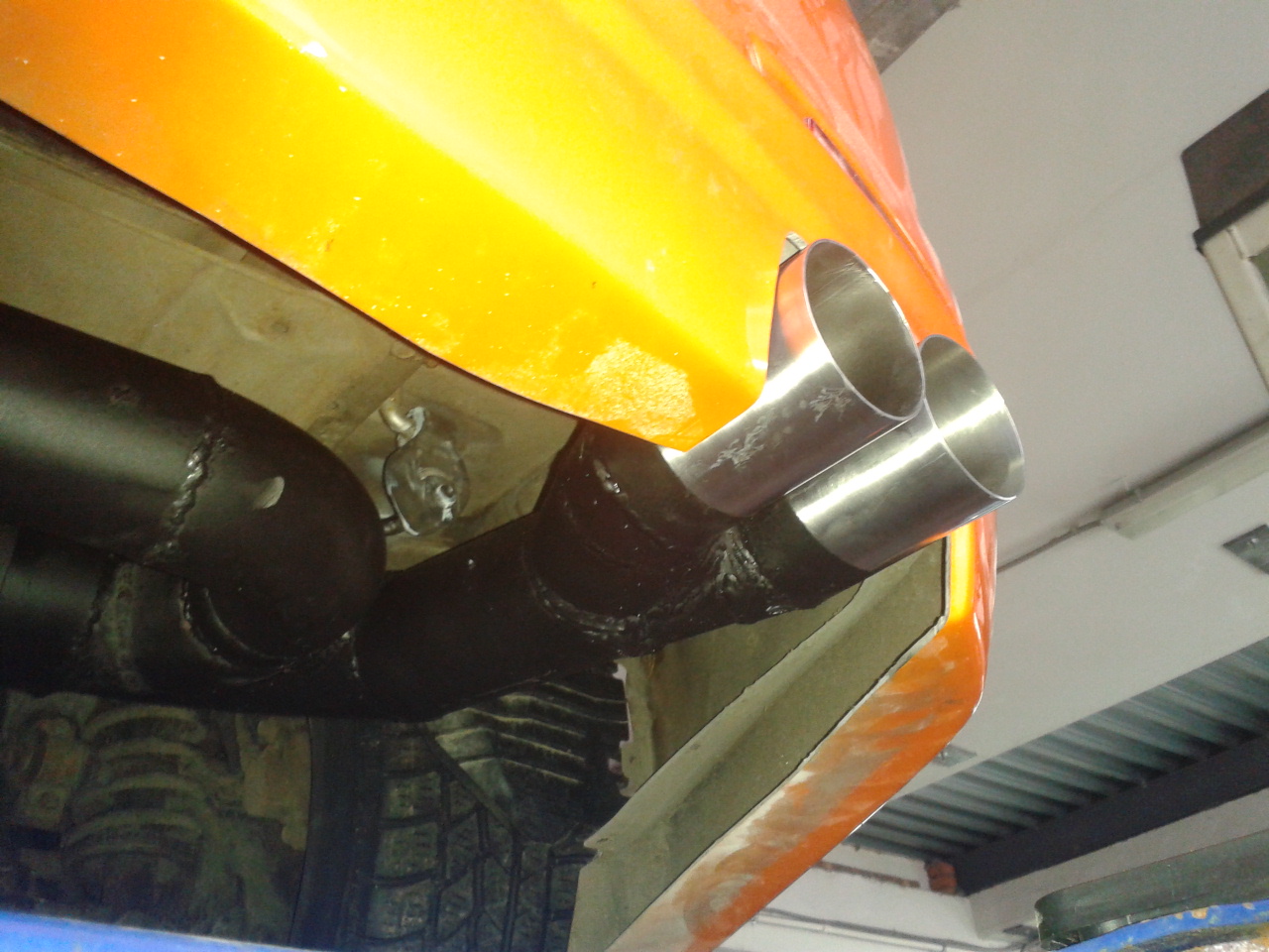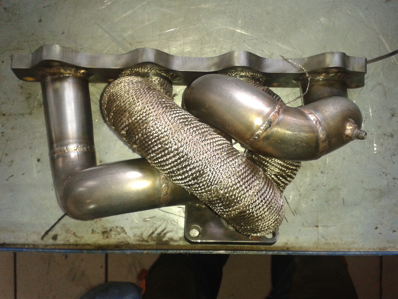 Сегодня доделал выхлоп. Завести и послушать звук пока немогу, надо собрать коллектор с турбой, обмотать всё термолентой и тд.