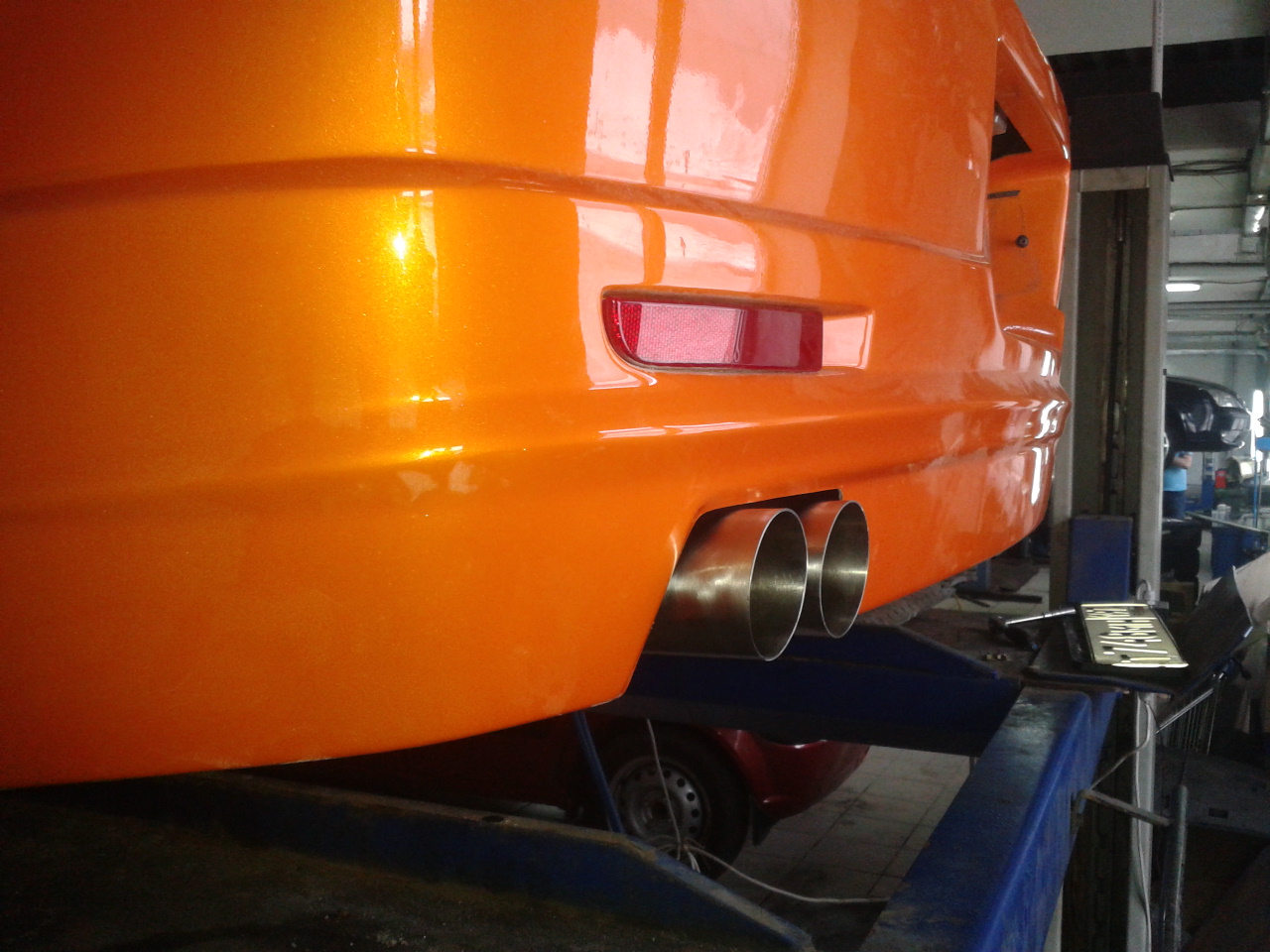 Downpipe Blitz, test pipe Blitz, OBX Resonator, OBX Forza muffler, TD05HR-16G6-9,8T, piping kit CXRacing, sensors STRI и Innovate, bypass Evo RS, fuel pump Walbro 255 l\h, MAF Evo, injector Evo 560cc, BLITZ DUAL-SBC, rear differential RallyArt.