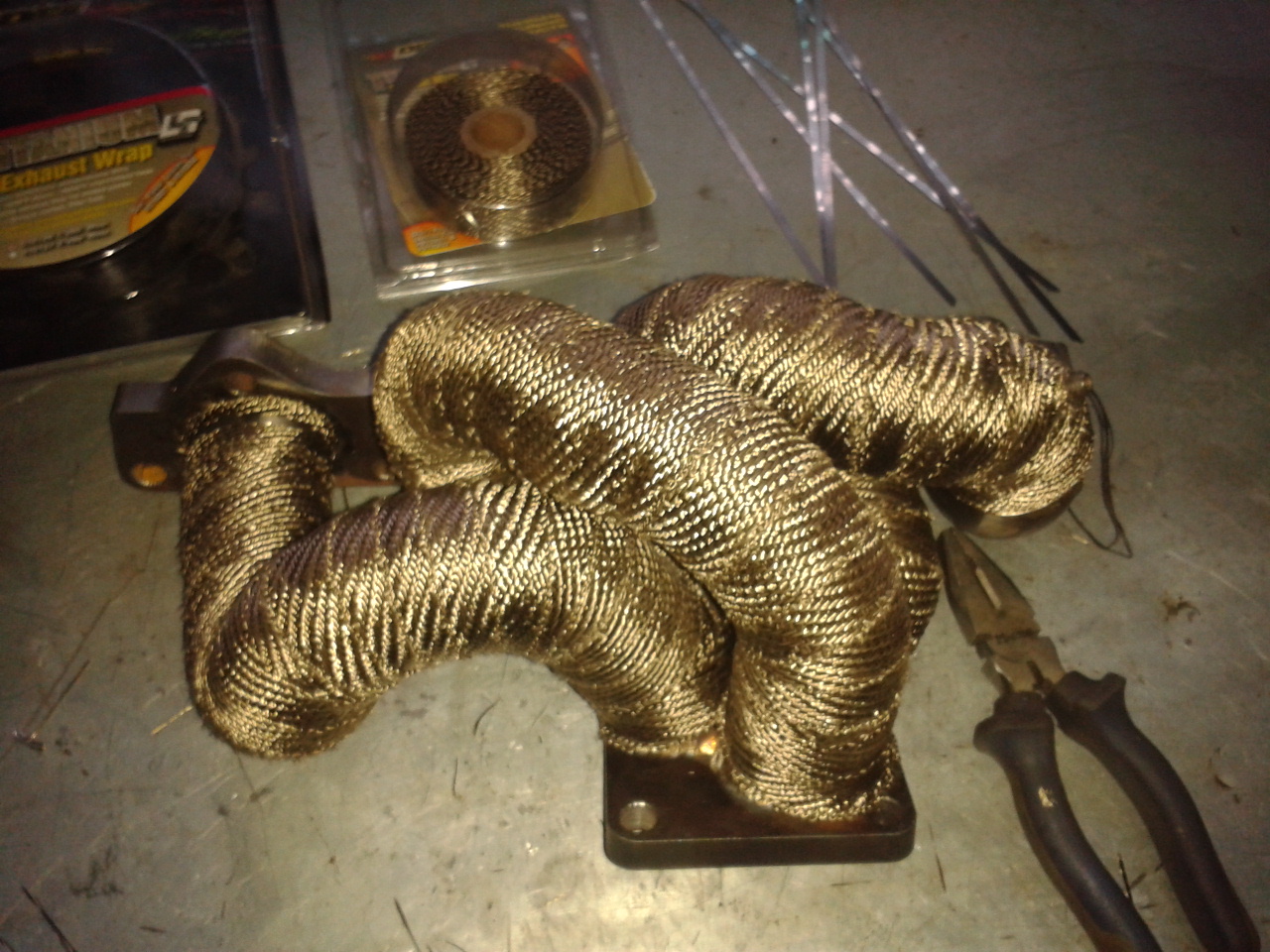 Вчера вернули коллектор из фрезеровки, сегодня помчал в Hot-tuning и прикупил там 20 метров термоленты DEI titanium, шириной 25мм. До кучи купил десяток хомутиков из нержавейки. Обмотал коллектор, первые впечатления от ленты: 1)Мотать легче чем лентой "Термо-тек", немного "распушивается" по краю среза, но это ерунда. 2)Выглядит симпотнее, и по заверению продавцов не требует обработки специальными термоспреями. 3)По моим ощущениям сделана на основе стекловолокна (весь вечер после обмотки чесался как беспризорник:))