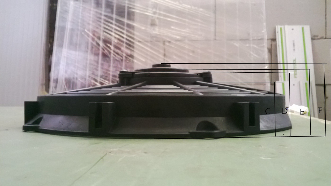 Вот все размеры вентилятора 12" с ютюн