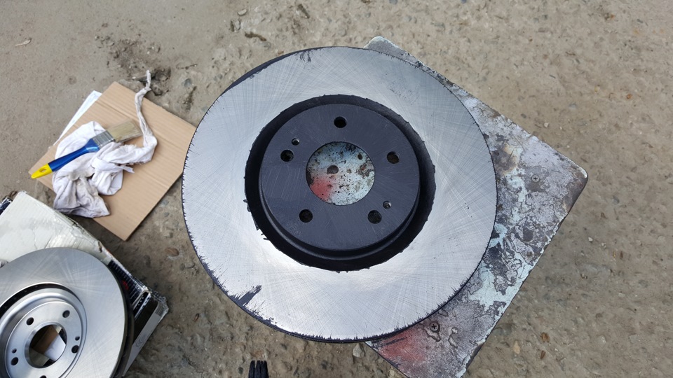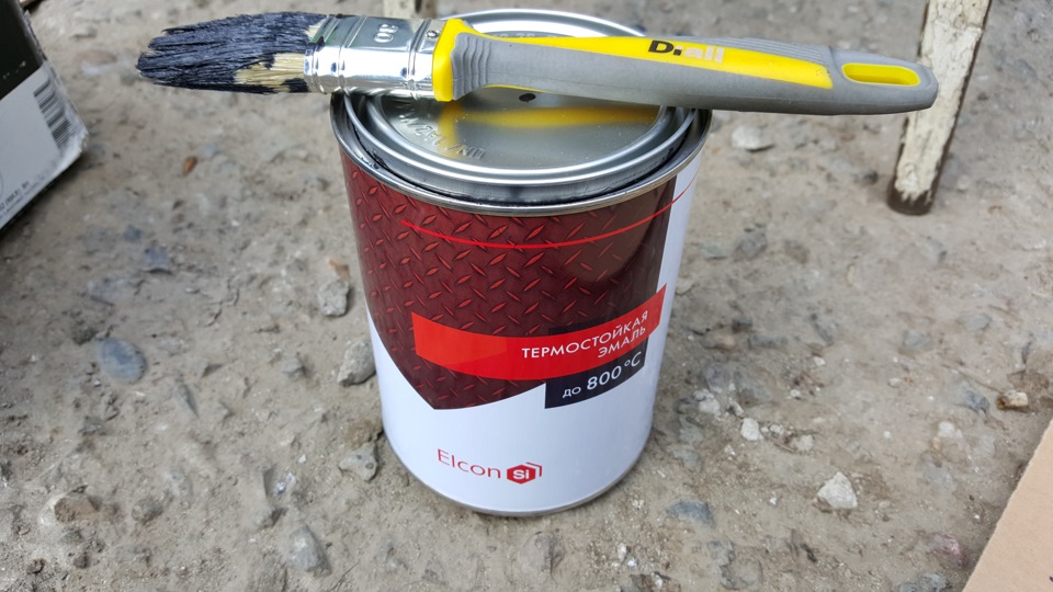 Дабы диски внешне дольше оставались в презентабельном виде, купил чёрную краску для печей, ну и кисточку. Отмыл от консерванта и покрасил.