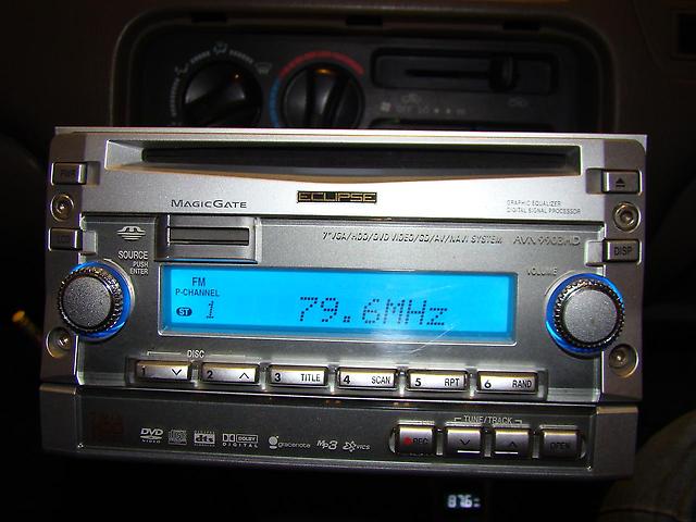 Авто пришло с японским аппаратами,ECLIPSE AVN9903HD,с выдвижным сенсорным экраном и жестким диском на 40 гиг(реально 20,+20 навигация),звук 5.1 и куча настроек,есть небольшие косяки(нет выхода на 1 канал и проблема с тачскрином в нижней части экрана),под одним сидением басовик,под другим цифровой тв тюнер той же фирмы,установил коробочку на антенну,радио ловит,CD играет,мне пока хватает,хотя хочется полный функционал,и DVD,и ТВ,и камеру заднего хода,навигация понятно что не получится,ну фиг с ним,в телефоне есть,только информации про маг очень мало(фото с нета)