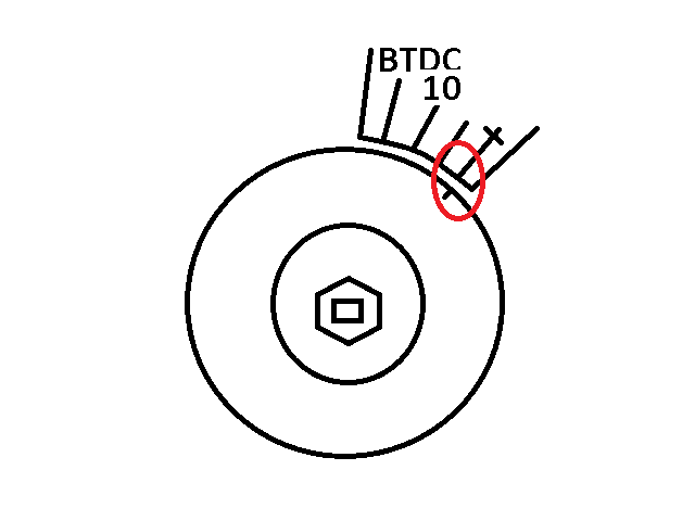 Посмотрел сегодня метки ГРМ на пластиковой крышке. Сфотать возможности не было поэтому нарисовал корявый рисунок...