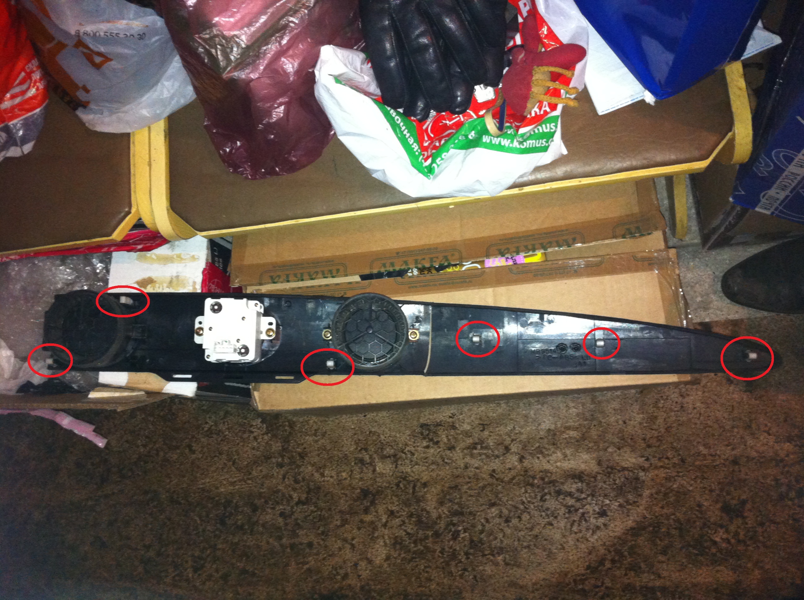 Как и обещал - вот вид панели сзади с указанием клипс