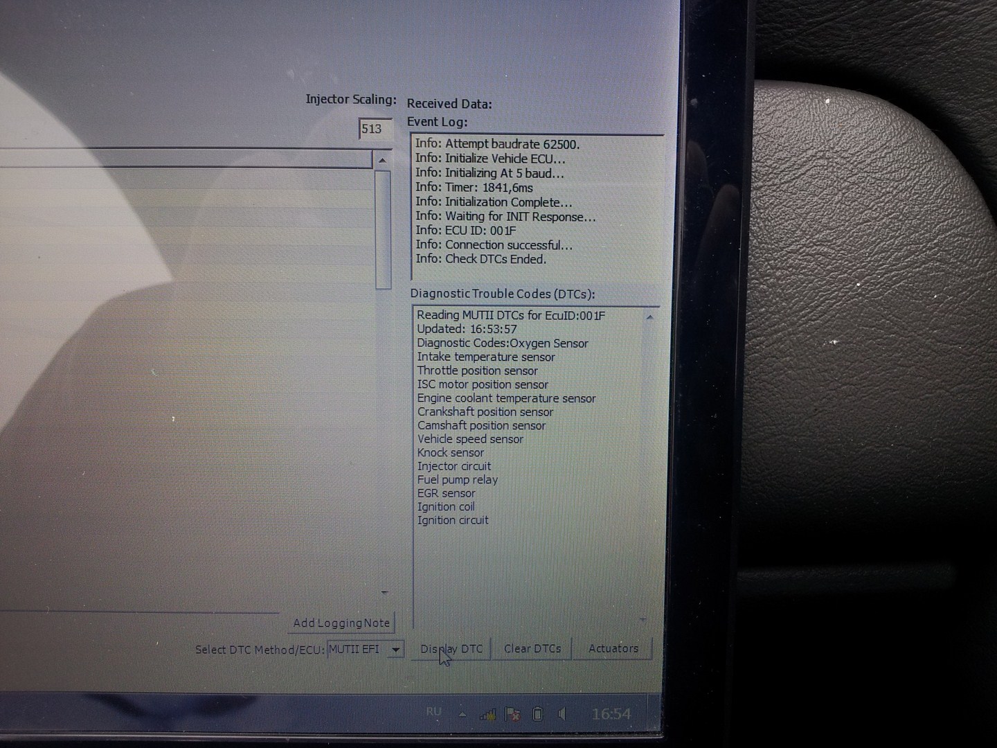 Самодиагностика(скрепкой) показала сначала ошибку датчика температуры воздуха и ошибку форсунки, после сброса ошибку датчика распрезвала!