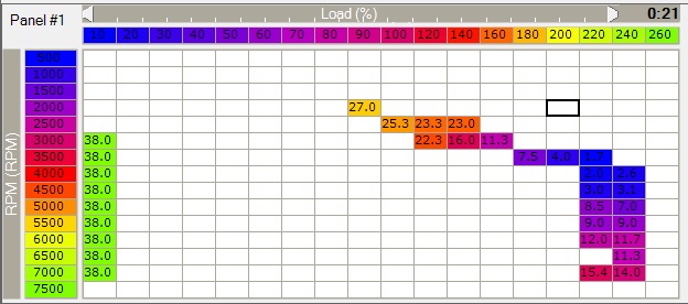 При смеси на 0.8 афр богаче получить угол на 7 меньше это как-то дофига... Могло быть свидетельством каких-то проблем.