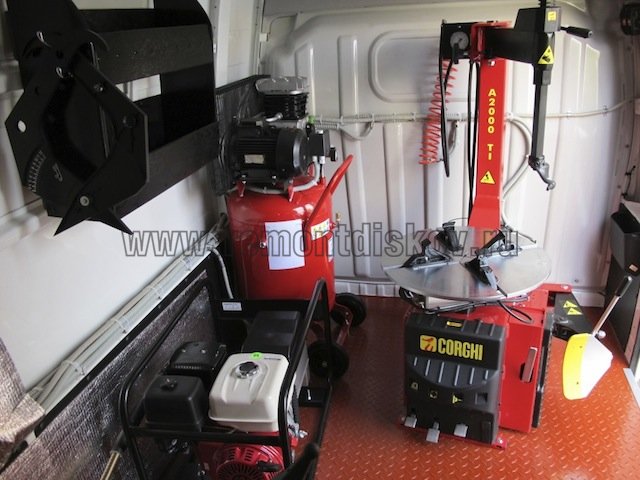 Наш шиномонтаж на колесах профессионально оборудован для быстрой и качественной передвижной работы.